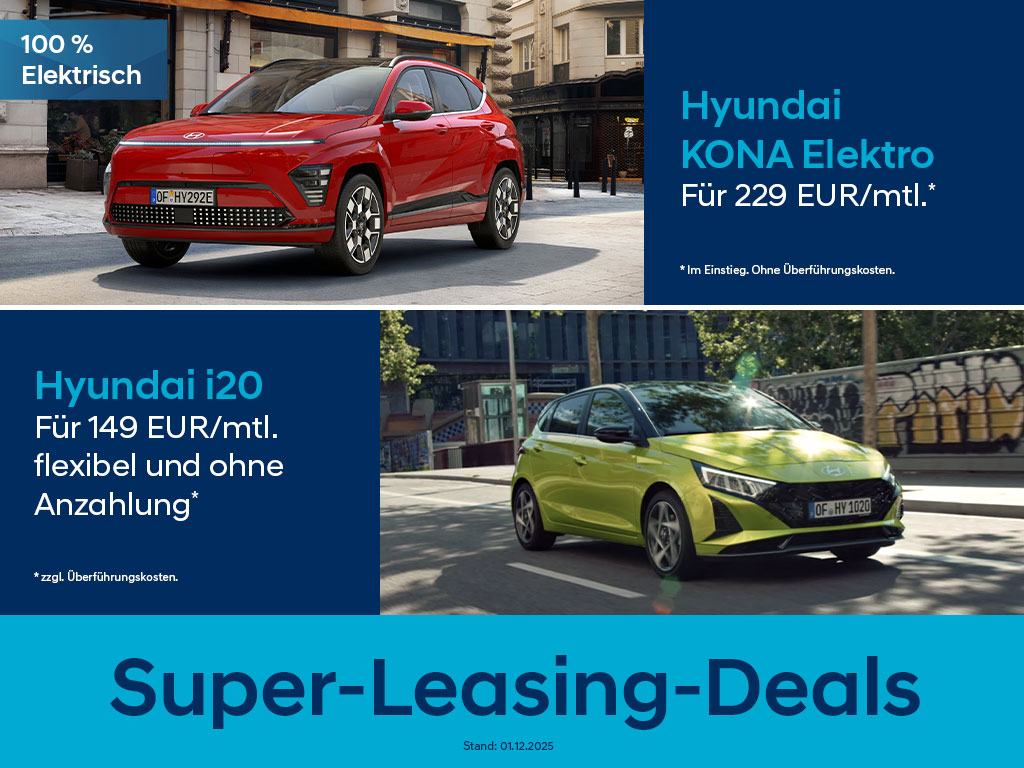 Finden Sie aus einer Auswahl von verschiedenen Hyundai-Modellen Ihren Aktionskracher zu attraktiven Preisen!