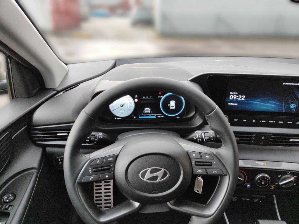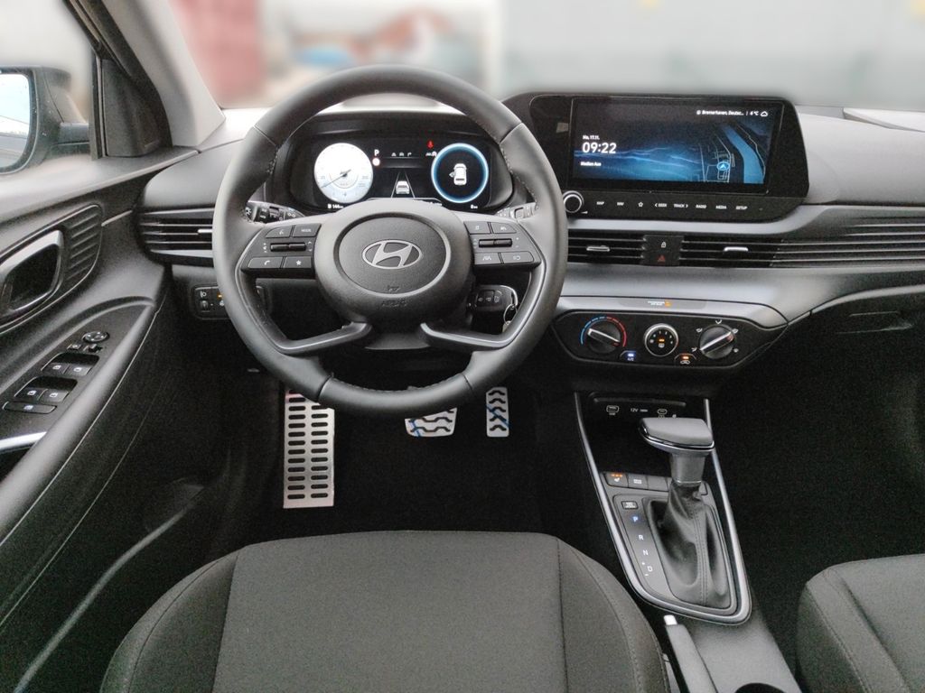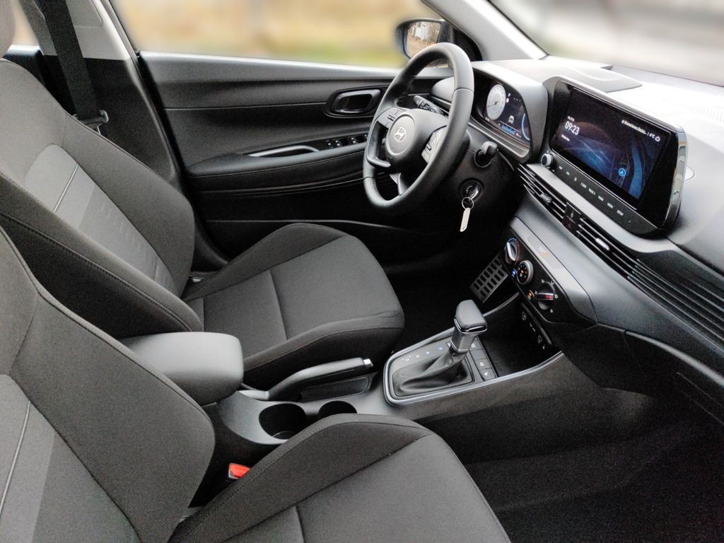 6 Lautsprecher, Airbag Beifahrerseite, Airbag Beifahrerseite abschaltbar, Airbag Fahrerseite, Ambiente-Beleuchtung, Audio-Navigationssystem, Audiosystem: Radio RDS, Außenspiegel elektr. anklappbar, Außenspiegel elektr. verstell- und heizbar, beide, Außenspiegel lackiert, Blinkleuchte in Außenspiegel integriert, Dachspoiler, Digital Cockpit (Instrumentenanzeige Digital), Einparkhilfe hinten, Einschaltautomatik für Fahrlicht / Lichtsensor, Elektron. Stabilitätskontrolle (ESC) mit Bremsassistent, Fahrassistenz-System: aktiver Spurhalteassistent (LKAS, Lane Keep Assist System), Fahrassistenz-System: Aufmerksamkeits-Assistent, Fahrassistenz-System: Autonome Notbremsfunktion inkl. Frontkollisionswarnung (FCA), Fahrassistenz-System: Berganfahrhilfe, Fahrassistenz-System: Fahrprofilauswahl (Drive Mode), Fahrassistenz-System: Fernlichtassistent, Fahrassistenz-System: Insassenalarm (Rear Occopant Alert, ROA), Fahrassistenz-System: Multikollisionsbremse (Multi Collision Brake), Fahrassistenz-System: Sicherheitssystem mit automatischem Notruf (ERA GLONASS / eCall), Fahrassistenz-System: Verkehrszeichenerkennung, erweitert (Geschwindigkeits-Regel-/Begrenzeranlage), Fensterheber elektrisch hinten, Freisprecheinrichtung Bluetooth, Gepäck-/Laderaumleuchte, Gepäckraumabdeckung / Rollo, Getriebe 7-Gang - Doppelkupplungsgetriebe DCT, Gurtstraffer, Heckleuchten LED, Heckscheibe heizbar, Induktionsladeschale für Smartphone, Karosserie: 5-türig, Kopf-Airbag-System, Kopfstützen hinten verstellbar, Kühlergrill schwarz (glanzlackiert), Lenkrad (4-Speichen), Lenkrad heizbar, LM-Felgen, Modellpflege, Motor 1,0 Ltr. - 74 kW TGDI KAT, Otto-Partikelfilter (OPF), Radioempfang digital (DAB+), Radstand 2580 mm, Reifen-Reparaturkit, Reifendruck-Kontrollsystem, Rückfahrkamera, Rücksitzlehne geteilt/klappbar, Schadstoffarm nach Abgasnorm Euro 6e, Schalt-/Wählhebelgriff Leder, Scheinwerfer LED, Seitenairbag vorn, Service-System: Online Update OTA (Over The Air), Service-System: Remote Services (Blue Link), Sicherheitsgurte vorn höhenverstellbar, Sitz vorn links höhenverstellbar, Sitzbezug / Polsterung: Stoff, Sitzheizung vorn, Sonnenblenden mit Spiegel (beleuchtet), Start/Stop-Anlage, Steckdose (12V-Anschluß) vorn, Türgriffe außen Wagenfarbe, USB-Anschluss + AUX-IN-Anschluss, USB-Anschluss hinten, USB-Anschluss Mittelkonsole, Verglasung getönt, Warnanlage für Sicherheitsgurte, Fahrer-/Beifahrerseite, Wireless SmartLink (Apple CarPlay)