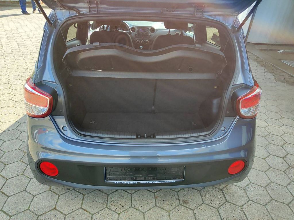 Außenfarbe Star Dust Innenraum black Sitze Standard Paket: Audio-Paket - Radio mit DAB - Radiofernbe Bordcomputer mit Anzeige von Momentan- und Durchs Paket: Design-Paket 14' - 14' Leichtmetallfelgen Grundausstattung i10 Seitenaufprallschutz in den Sicherheitslenksäule neigungsverstellbar Wegfahrsperre elektronisch Außenspiegel elektrisch einstellbar und beheizbar Heckscheibe beheizbar mit Abschaltautomatik Stoßfänger in Wagenfarbe Energie absorbierend Leuchtweitenregulierung Radio: Audiosystem - integriertes Radio mit MP3-F Reifen-Reparatur-Kit Lenkrad höhenverstellbar Heckscheiben-Wisch-/Waschanlage Fensterheber elektrisch hinten Gepäckraumabdeckung herausnehmbar Servolenkung elektronisch unterstützt Sitze: ISOFIX-Befestigungssystem hinten auf den ä Assistent: Bremsassistent Steckdose 12-Volt vorne Lenkrad und Schalt-/Automatikwählhebel mit Lederb Getriebe: 5-Gang-Schaltgetriebe Fensterheber elektrisch vorn Drehzahlmesser Zentralverriegelung Sitzheizung vorn Sitze: Fahrersitz höhenverstellbar Verglasung dunkel getönt ab B-Säule Lackierung: Metallic-Lackierung Zentralverriegelung mit Funkfernbedienung LED-Tagfahrlicht ESC Elektrisches Stabilitätsprogramm und fahrdyna Alarmanlage Airbag: Seitenairbags vorn Außentemperaturanzeige ABS mit EBV Geschwindigkeits-Regelanlage Kopfstützen (5) vorn und hinten höhenverstellbar Polster: Stoff Fernentriegelung für Tankklappe Kindersicherung in den hinteren Türen Klimaanlage inkl. Pollenfilter und Umluftschalter Verglasung rundum getönt Radio: Antenne Ablagen - Fächer in den Türen - Fach in der Mitt Aschenbecher flexibel Lenkrad beheizbar Zigarettenanzünder Digitaluhr Airbag: Vorhangairbags vorn und hinten fúr die äu Sicherheitsgurte - vorne Dreipunkt-Automatik mit Dachspoiler mit integrierter 3. Bremsleuchte Airbag: Fahrer- und Beifahrerseite Beifahrerairba Räder: Reifendruckkontrollsystem (TPMS) Rücksitzbank und -lehne 60:40 geteilt und umklapp