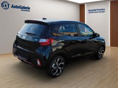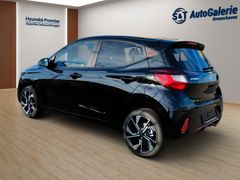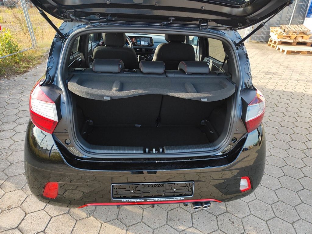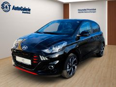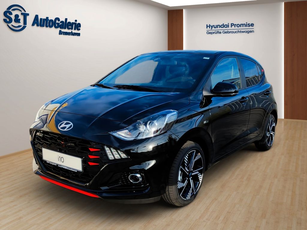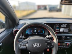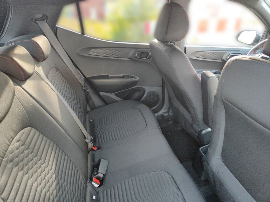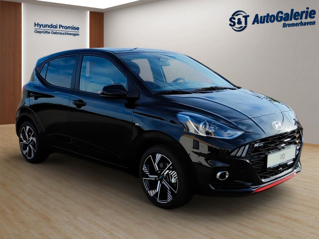 2 Lautsprecher, 3. Bremsleuchte, Ablagebox / Stauraum unter Kofferraumboden, Airbag Beifahrerseite, Airbag Beifahrerseite abschaltbar, Airbag Fahrerseite, Aktives Bremslicht (ESS), Audiobedienung am Lenkrad, Audiosystem: Radio RDS, Außenspiegel elektr. anklappbar, Außenspiegel elektr. verstell- und heizbar, beide, Außenspiegel Phantom Black, Blinkleuchte in Außenspiegel integriert, Bordcomputer, Bordcomputer mit TFT-Farbdisplay, hochauflösend, Dachhimmel schwarz, Dachspoiler, Design- und Ausstattungslinie N Line, Einparkhilfe hinten, Einschaltautomatik für Fahrlicht / Lichtsensor, Elektron. Stabilitätskontrolle (ESC) mit Bremsassistent, Fahrassistenz-System: aktiver Spurhalteassistent (LKAS, Lane Keep Assist System), Fahrassistenz-System: Aufmerksamkeits-Assistent, Fahrassistenz-System: Autonome Notbremsfunktion inkl. Frontkollisionswarnung (FCA), Fahrassistenz-System: Berganfahrhilfe, Fahrassistenz-System: Fernlichtassistent, Fahrassistenz-System: Sicherheitssystem mit automatischem Notruf (ERA GLONASS / eCall), Fahrassistenz-System: Verkehrszeichenerkennung, erweitert (Geschwindigkeits-Regel-/Begrenzeranlage), Fensterheber elektrisch hinten, Freisprecheinrichtung Bluetooth, Gepäck-/Laderaumleuchte, Geschwindigkeits-Begrenzeranlage (Speed-Limiter), Gurtstraffer, Heckleuchten LED, Heckscheibe heizbar, Heckscheibenwischer, Isofix-Aufnahmen für Kindersitz, Karosserie: 5-türig, Komfort-Paket, Kopf-Airbag-System, Kopfstützen hinten verstellbar, Lenkrad heizbar, Lenkrad mit Multifunktion, Lenksäule (Lenkrad) höhenverstellbar, LM-Felgen, Modellpflege, Motor 1,0 Ltr. - 66 kW TGDI KAT, Navigationssystem, Nebelschlussleuchte, Otto-Partikelfilter (OPF), Projektor-Scheinwerfer, Radioempfang digital (DAB+), Reifen-Reparaturkit, Reifendruck-Kontrollsystem, Rückfahrkamera, Rücksitzlehne geteilt/klappbar, Schadstoffarm nach Abgasnorm Euro 6e, Schalt-/Wählhebelgriff Leder, Seitenairbag vorn, Service-System: Online Update OTA (Over The Air), Sitz vorn links höhenverstellbar, Sitzbezug / Polsterung: Stoff, Sitzheizung vorn, Smartphone Schnittstelle (Apple CarPlay & Android Auto), Start/Stop-Anlage, Türgriffe außen Wagenfarbe, USB-Anschluss Mittelkonsole, Verglasung hinten abgedunkelt (Privacy Glass), Warnanlage für Sicherheitsgurte, Fahrer-/Beifahrerseite