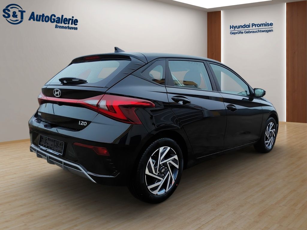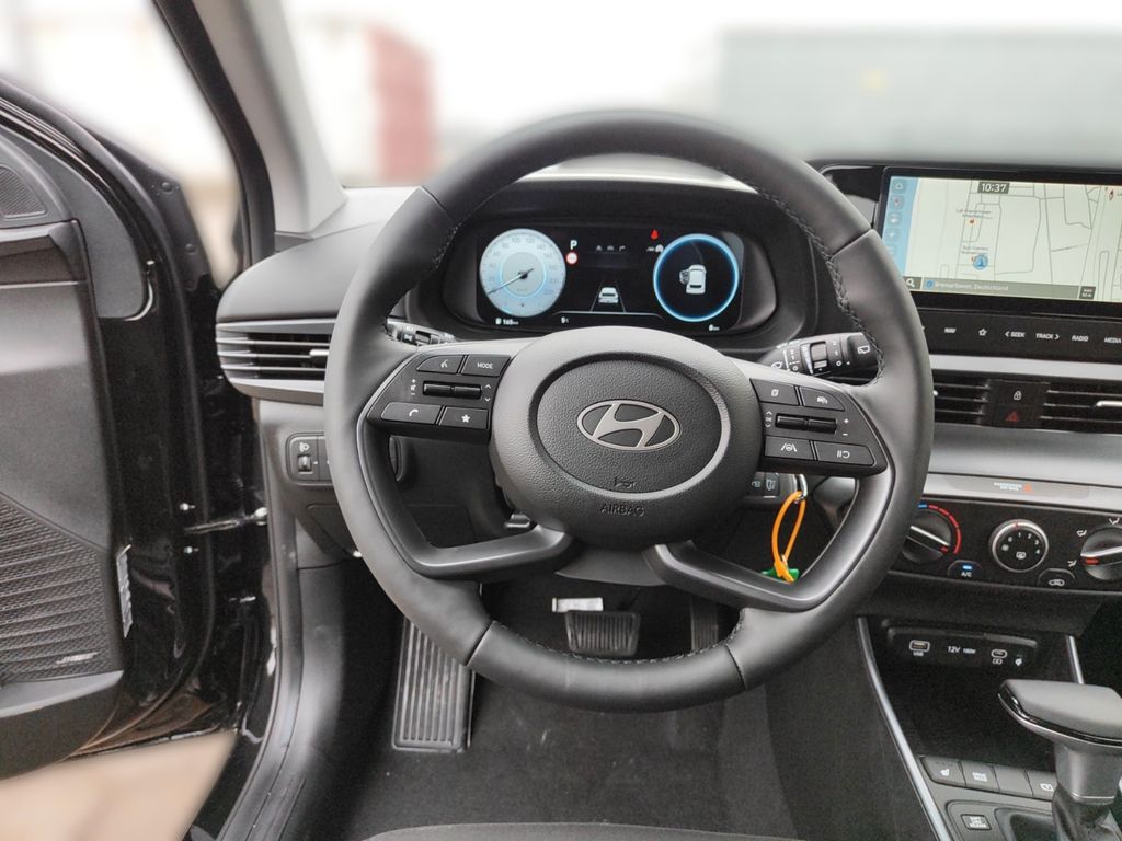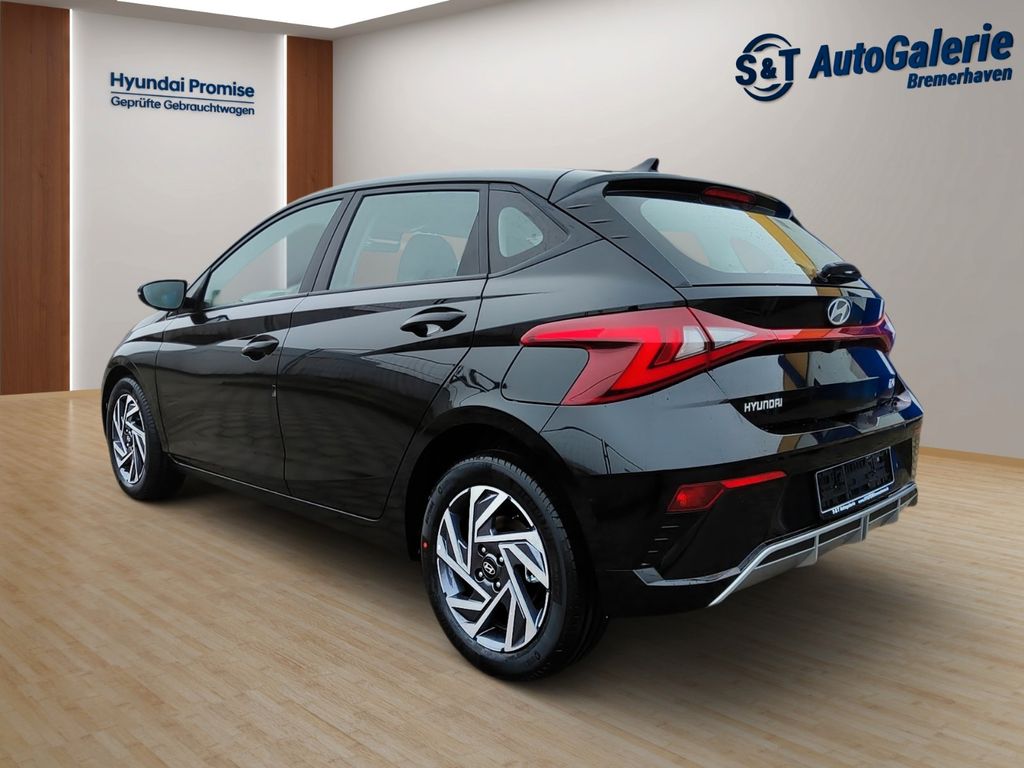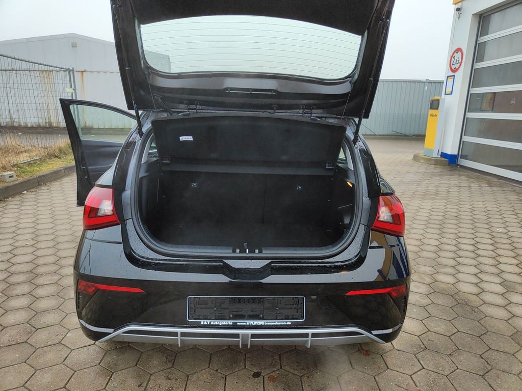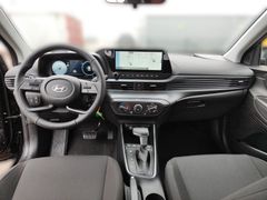 6 Lautsprecher, Airbag Beifahrerseite, Airbag Beifahrerseite abschaltbar, Airbag Fahrerseite, Ambiente-Beleuchtung, Audio-Navigationssystem, Audiosystem: Radio RDS, Außenspiegel elektr. anklappbar, Außenspiegel elektr. verstell- und heizbar, beide, Außenspiegel lackiert, Blinkleuchte in Außenspiegel integriert, Bordcomputer, Dachspoiler, Dachspoiler Wagenfarbe, Einparkhilfe hinten, Einschaltautomatik für Fahrlicht / Lichtsensor, Elektron. Stabilitätskontrolle (ESC) mit Bremsassistent, Fahrassistenz-System: aktiver Spurhalteassistent (LKAS, Lane Keep Assist System), Fahrassistenz-System: Aufmerksamkeits-Assistent, Fahrassistenz-System: Autonome Notbremsfunktion inkl. Frontkollisionswarnung (FCA), Fahrassistenz-System: Berganfahrhilfe, Fahrassistenz-System: Fahrprofilauswahl (Drive Mode), Fahrassistenz-System: Fernlichtassistent, Fahrassistenz-System: Insassenalarm (ROA), Fahrassistenz-System: Multikollisionsbremse (Multi Collision Brake), Fahrassistenz-System: Sicherheitssystem mit automatischem Notruf (ERA GLONASS / eCall), Fahrassistenz-System: Verkehrszeichenerkennung, erweitert (Geschwindigkeits-Regel-/Begrenzeranlage), Fensterheber elektrisch hinten, Freisprecheinrichtung Bluetooth, Funktions-Paket, Gepäck-/Laderaumleuchte, Gepäckraumabdeckung / Rollo, Gurtstraffer, Heckscheibe heizbar, Induktionsladeschale für Smartphone, Karosserie: 5-türig, Kopf-Airbag-System, Kopfstützen hinten verstellbar, Kühlergrill schwarz (glanzlackiert), Lenkrad heizbar, Lenksäule (Lenkrad) höhenverstellbar, Lenksäule (Lenkrad) längsverstellbar, LM-Felgen, Modellpflege, Motor 1,0 Ltr. - 74 kW TGDI KAT, Otto-Partikelfilter (OPF), Radioempfang digital (DAB+), Reifen-Reparaturkit, Reifendruck-Kontrollsystem, Rückfahrkamera, Rücksitzlehne geteilt/klappbar, Schadstoffarm nach Abgasnorm Euro 6e, Seitenairbag vorn, Service-System: Remote Services (Blue Link), Sicherheitsgurte vorn höhenverstellbar, Sitz vorn links höhenverstellbar, Sitzbezug / Polsterung: Stoff, Sitzheizung vorn, Sonnenblenden mit Spiegel (beleuchtet), Start/Stop-Anlage, Steckdose (12V-Anschluß) vorn, Türgriffe außen Wagenfarbe, USB-Anschluss (Typ C), USB-Anschluss hinten, USB-Anschluss hinten (Typ C), USB-Anschluss Mittelkonsole, Verglasung getönt, Warnanlage für Sicherheitsgurte, Fahrer-/Beifahrerseite, Wireless SmartLink (Apple CarPlay)