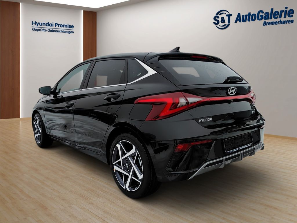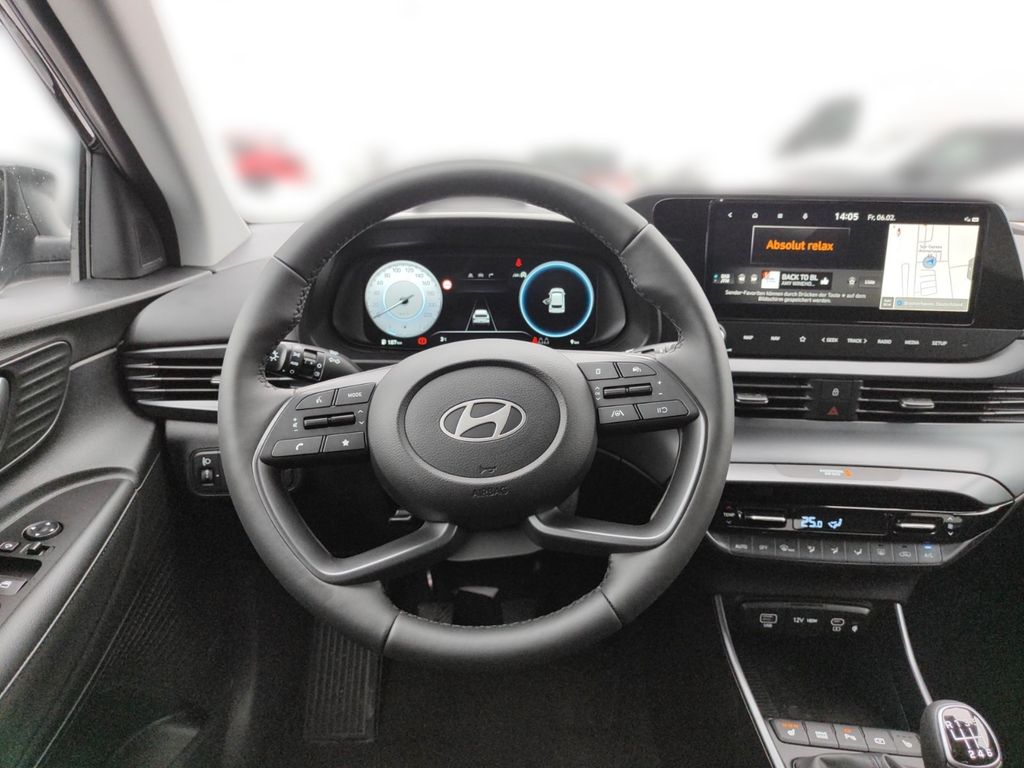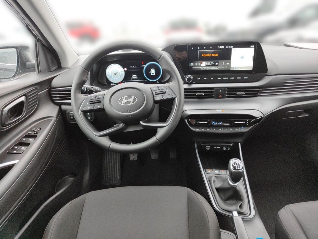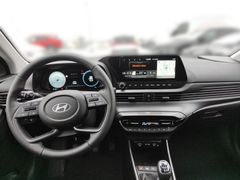 Airbag Beifahrerseite, Airbag Beifahrerseite abschaltbar, Airbag Fahrerseite, Ambiente-Beleuchtung, Audio-Navigationssystem, Audiosystem: Radio RDS, Außenspiegel elektr. anklappbar, Außenspiegel elektr. verstell- und heizbar, beide, Außenspiegel lackiert, Blinkleuchte in Außenspiegel integriert, Bordcomputer, Dachspoiler, Dachspoiler Wagenfarbe, Einschaltautomatik für Fahrlicht / Lichtsensor, Elektron. Stabilitätskontrolle (ESC) mit Bremsassistent, Fahrassistenz-System: aktiver Spurhalteassistent (LKAS, Lane Keep Assist System), Fahrassistenz-System: Aufmerksamkeits-Assistent, Fahrassistenz-System: Autonome Notbremsfunktion inkl. Frontkollisionswarnung (FCA), Fahrassistenz-System: Berganfahrhilfe, Fahrassistenz-System: Fahrprofilauswahl (Drive Mode), Fahrassistenz-System: Fernlichtassistent, Fahrassistenz-System: Insassenalarm (Rear Occopant Alert, ROA), Fahrassistenz-System: Multikollisionsbremse (Multi Collision Brake), Fahrassistenz-System: Querverkehrs-Assistent Heck (Cross Traffic), Fahrassistenz-System: Sicherheitssystem mit automatischem Notruf (ERA GLONASS / eCall), Fahrassistenz-System: Totwinkel-Assistent, Fahrassistenz-System: Verkehrszeichenerkennung, erweitert (Geschwindigkeits-Regel-/Begrenzeranlage), Fensterheber elektrisch hinten, Fensterzierleisten verchromt, Freisprecheinrichtung Bluetooth, Funktions-Paket, Gepäck-/Laderaumleuchte, Gepäckraumabdeckung / Rollo, Gurtstraffer, Heckscheibe heizbar, Induktionsladeschale für Smartphone, Innenspiegel mit Abblendautomatik, Karosserie: 5-türig, Komfort-Paket, Kopf-Airbag-System, Kopfstützen hinten verstellbar, Kühlergrill schwarz (glanzlackiert), Lenkrad heizbar, Lenksäule (Lenkrad) höhenverstellbar, Lenksäule (Lenkrad) längsverstellbar, Licht-Paket, LM-Felgen, Modellpflege, Motor 1,0 Ltr. - 74 kW TGDI KAT, Otto-Partikelfilter (OPF), Radioempfang digital (DAB+), Reifen-Reparaturkit, Reifendruck-Kontrollsystem, Rückfahrkamera, Rücksitzlehne geteilt/klappbar, Schadstoffarm nach Abgasnorm Euro 6e, Seitenairbag vorn, Service-System: Remote Services (Blue Link), Sicherheitsgurte vorn höhenverstellbar, Sitz vorn links höhenverstellbar, Sitzbezug / Polsterung: Stoff, Sitzheizung vorn, Smart-Paket, Sonnenblenden mit Spiegel (beleuchtet), Sound-System BOSE, Start/Stop-Anlage, Steckdose (12V-Anschluß) vorn, Türgriffe außen Wagenfarbe, USB-Anschluss (Typ C), USB-Anschluss hinten, USB-Anschluss hinten (Typ C), USB-Anschluss Mittelkonsole, Verglasung getönt, Verglasung hinten abgedunkelt (Privacy Glass), Warnanlage für Sicherheitsgurte, Fahrer-/Beifahrerseite, Wireless SmartLink (Apple CarPlay)