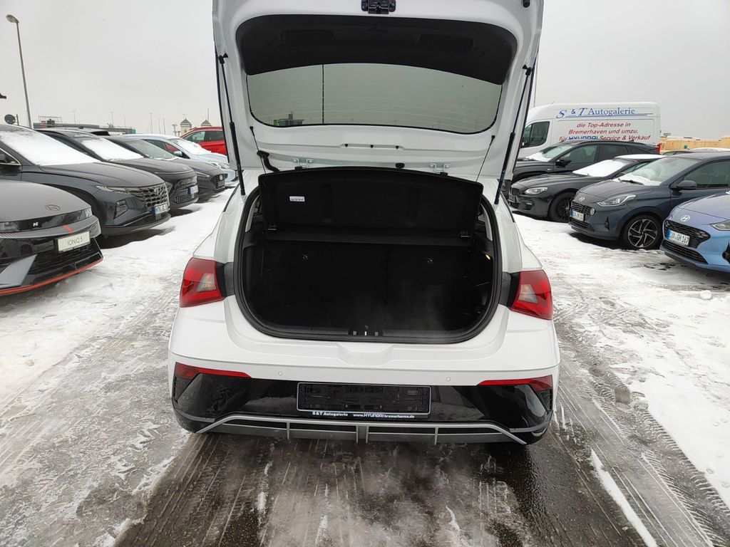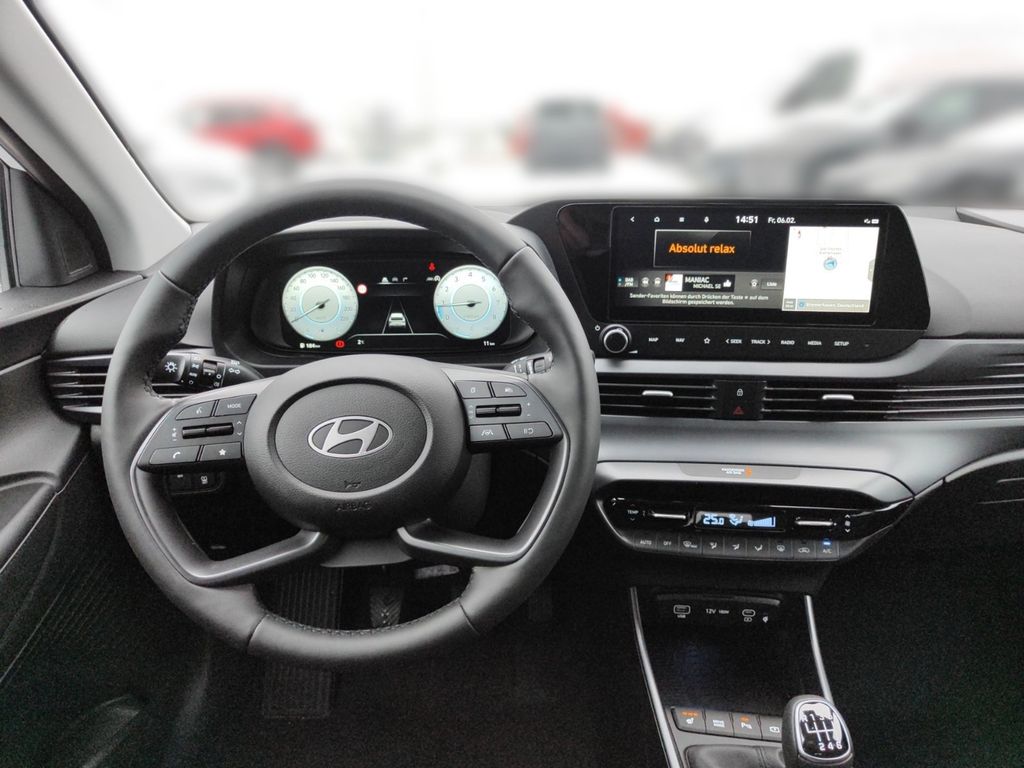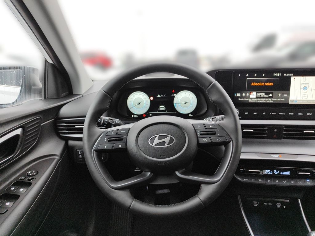 Airbag Beifahrerseite, Airbag Beifahrerseite abschaltbar, Airbag Fahrerseite, Ambiente-Beleuchtung, Audio-Navigationssystem, Audiosystem: Radio RDS, Außenspiegel elektr. anklappbar, Außenspiegel elektr. verstell- und heizbar, beide, Außenspiegel lackiert, Blinkleuchte in Außenspiegel integriert, Bordcomputer, Dachspoiler, Dachspoiler Wagenfarbe, Einschaltautomatik für Fahrlicht / Lichtsensor, Elektron. Stabilitätskontrolle (ESC) mit Bremsassistent, Fahrassistenz-System: aktiver Spurhalteassistent (LKAS, Lane Keep Assist System), Fahrassistenz-System: Aufmerksamkeits-Assistent, Fahrassistenz-System: Autonome Notbremsfunktion inkl. Frontkollisionswarnung (FCA), Fahrassistenz-System: Berganfahrhilfe, Fahrassistenz-System: Fahrprofilauswahl (Drive Mode), Fahrassistenz-System: Fernlichtassistent, Fahrassistenz-System: Insassenalarm (Rear Occopant Alert, ROA), Fahrassistenz-System: Multikollisionsbremse (Multi Collision Brake), Fahrassistenz-System: Querverkehrs-Assistent Heck (Cross Traffic), Fahrassistenz-System: Sicherheitssystem mit automatischem Notruf (ERA GLONASS / eCall), Fahrassistenz-System: Totwinkel-Assistent, Fahrassistenz-System: Verkehrszeichenerkennung, erweitert (Geschwindigkeits-Regel-/Begrenzeranlage), Fensterheber elektrisch hinten, Fensterzierleisten verchromt, Freisprecheinrichtung Bluetooth, Funktions-Paket, Gepäck-/Laderaumleuchte, Gepäckraumabdeckung / Rollo, Gurtstraffer, Heckscheibe heizbar, Induktionsladeschale für Smartphone, Innenspiegel mit Abblendautomatik, Karosserie: 5-türig, Komfort-Paket, Kopf-Airbag-System, Kopfstützen hinten verstellbar, Kühlergrill schwarz (glanzlackiert), Lenkrad heizbar, Lenksäule (Lenkrad) höhenverstellbar, Lenksäule (Lenkrad) längsverstellbar, Licht-Paket, LM-Felgen, Modellpflege, Motor 1,0 Ltr. - 74 kW TGDI KAT, Otto-Partikelfilter (OPF), Radioempfang digital (DAB+), Reifen-Reparaturkit, Reifendruck-Kontrollsystem, Rückfahrkamera, Rücksitzlehne geteilt/klappbar, Schadstoffarm nach Abgasnorm Euro 6e, Seitenairbag vorn, Service-System: Remote Services (Blue Link), Sicherheitsgurte vorn höhenverstellbar, Sitz vorn links höhenverstellbar, Sitzbezug / Polsterung: Stoff, Sitzheizung vorn, Smart-Paket, Sonnenblenden mit Spiegel (beleuchtet), Sound-System BOSE, Start/Stop-Anlage, Steckdose (12V-Anschluß) vorn, Türgriffe außen Wagenfarbe, USB-Anschluss (Typ C), USB-Anschluss hinten, USB-Anschluss hinten (Typ C), USB-Anschluss Mittelkonsole, Verglasung getönt, Verglasung hinten abgedunkelt (Privacy Glass), Warnanlage für Sicherheitsgurte, Fahrer-/Beifahrerseite, Wireless SmartLink (Apple CarPlay)
