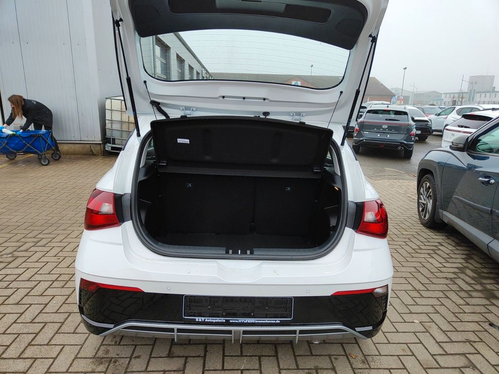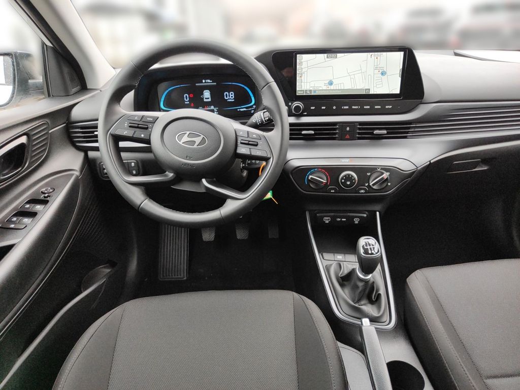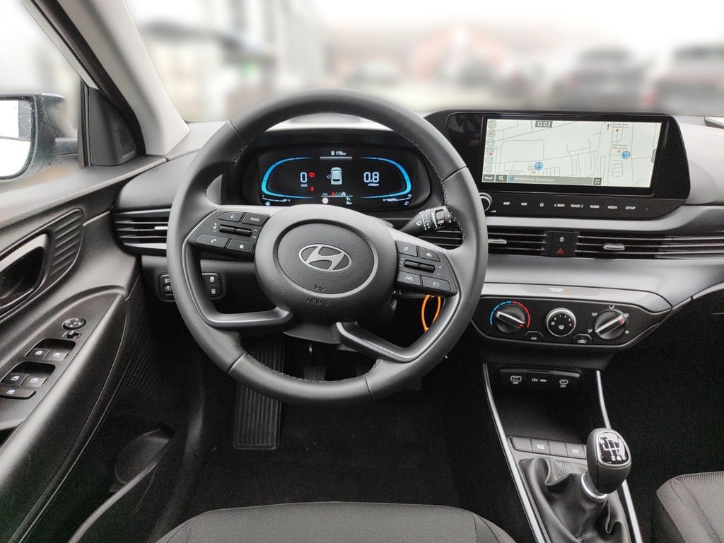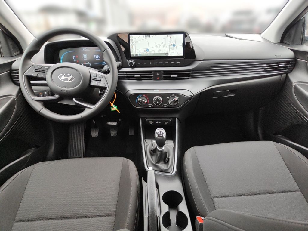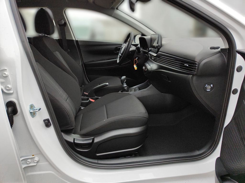 6 Lautsprecher, Airbag Beifahrerseite, Airbag Beifahrerseite abschaltbar, Airbag Fahrerseite, Audio-Navigationssystem, Audiosystem: Radio RDS, Außenspiegel elektr. verstell- und heizbar, beide, Außenspiegel lackiert, Blinkleuchte in Außenspiegel integriert, Bordcomputer, Dachspoiler, Dachspoiler Wagenfarbe, Einparkhilfe hinten, Einschaltautomatik für Fahrlicht / Lichtsensor, Elektron. Stabilitätskontrolle (ESC) mit Bremsassistent, Fahrassistenz-System: aktiver Spurhalteassistent (LKAS, Lane Keep Assist System), Fahrassistenz-System: Aufmerksamkeits-Assistent, Fahrassistenz-System: Autonome Notbremsfunktion inkl. Frontkollisionswarnung (FCA), Fahrassistenz-System: Berganfahrhilfe, Fahrassistenz-System: Fahrprofilauswahl (Drive Mode), Fahrassistenz-System: Fernlichtassistent, Fahrassistenz-System: Insassenalarm (ROA), Fahrassistenz-System: Multikollisionsbremse (Multi Collision Brake), Fahrassistenz-System: Sicherheitssystem mit automatischem Notruf (ERA GLONASS / eCall), Fahrassistenz-System: Verkehrszeichenerkennung, erweitert (Geschwindigkeits-Regel-/Begrenzeranlage), Fahrer-Informations-System (Display 4,2 Zoll), Fensterheber elektrisch hinten, Freisprecheinrichtung Bluetooth, Gepäck-/Laderaumleuchte, Gepäckraumabdeckung / Rollo, Gurtstraffer, Heckscheibe heizbar, Karosserie: 5-türig, Kopf-Airbag-System, Kopfstützen hinten verstellbar, Kühlergrill schwarz (glanzlackiert), Lenkrad (4-Speichen), Lenksäule (Lenkrad) höhenverstellbar, Lenksäule (Lenkrad) längsverstellbar, Modellpflege, Motor 1,0 Ltr. - 74 kW TGDI KAT, Otto-Partikelfilter (OPF), Radioempfang digital (DAB+), Reifen-Reparaturkit, Reifendruck-Kontrollsystem, Rückfahrkamera, Rücksitzlehne geteilt/klappbar, Schadstoffarm nach Abgasnorm Euro 6e, Seitenairbag vorn, Service-System: Remote Services (Blue Link), Sicherheitsgurte vorn höhenverstellbar, Sitz vorn links höhenverstellbar, Sitzbezug / Polsterung: Stoff, Sonnenblenden mit Spiegel, Start/Stop-Anlage, Steckdose (12V-Anschluß) vorn, Türgriffe außen Wagenfarbe, USB-Anschluss (Typ C), USB-Anschluss hinten (Typ C), USB-Anschluss Mittelkonsole, Verglasung getönt, Warnanlage für Sicherheitsgurte, Fahrer-/Beifahrerseite, Wireless SmartLink (Apple CarPlay)