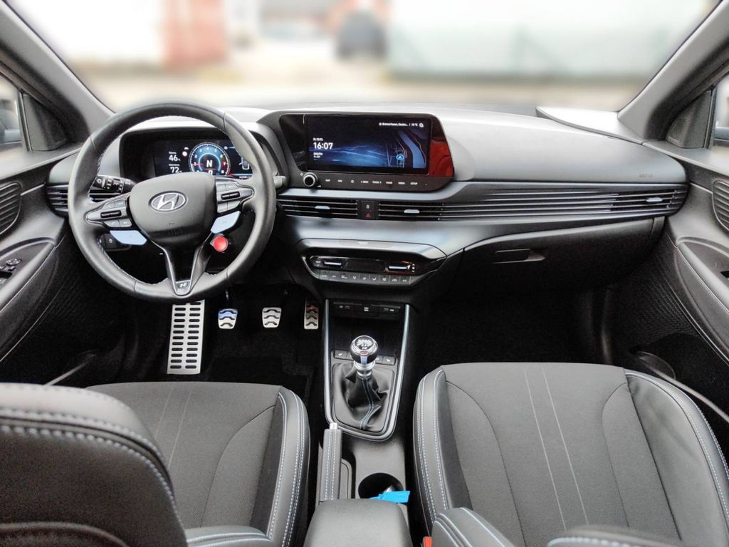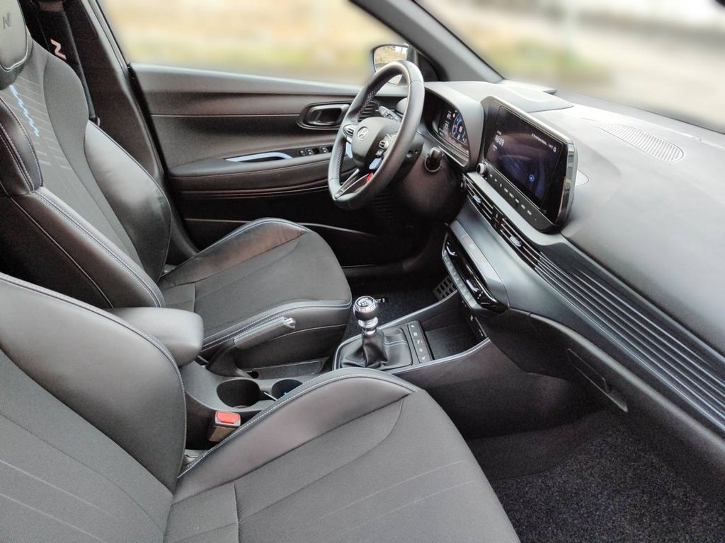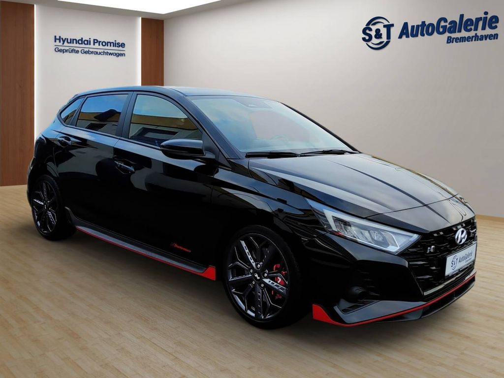 Außenfarbe Phantom Black, Lenkrad und Schaltknauf mit Lederbezug - Lenkrad beheizbar - Multifunktion Dreispeichenlenkrad, Leseleuchte vorn und hinten, Sitze: Rücksitzlehne, asymmetrisch geteilt umklappbar, Verglasung: wärmedämende Frontscheibe, Gepäckraumbeleuchtung, Gepäckraumboden variabel, Ablagen: Smartphone-Ablage - mit kabelloser Ladefunktion (Qi Standard), Radio-Navigationssystem - 10,25-Zoll-Farb-Touchscreen - RDS Radio - BOSE Premium Soundsystem - Digitaler Radioempfang DAB+ - Lifetime MapCare - Android Auto & Apple CarPlay - Bluelink-Connect -, Sitze: Sportsitze mit integrierten Kopfstützen, Verglasung: Geräuschreduzierende Frontscheibe, Heckscheibe, beheizbar, mit Abschaltautomatik, Bremsassistent (BAS), Sportpedale in Aluminiumoptik, Mittelarmlehne vorn mit Ablagefach, verschiebbar, Reifen-Reparatur-Kit, Partikelfilter: Ottopartikelfilter, Rückfahrkamera, Türgriffe in Wagenfarbe lackiert, Start/Stopp-Automatik, Sonnenblende, Fahrer und Beifahrer, mit Spiegel, beleuchtet, Kopfstützen (3) hinten höhenverstellbar, Steckdose, 12-Volt vorne, Servolenkung, Sitze: Fahrersitz höhenverstellbar, Heckscheibenwischer, Berganfahrassistent (HAC), LED-Tagfahrlicht, Lackierung: Mineraleffekt-Lackierung, Abbiegelicht statisch, Alarmanlage, Airbag: Seitenairbags vorn, Geschwindigkeitsregelanlage mit Limiter, Innenspiegel, automatisch abblendend, Zentralverriegelung mit Funkfernbedienung mit schlüsselintegrierter Funkfernbedienung, Ablagen - Fächer in den Türen - Fach in der Mittelkonsole des Armaturenbretts - Ablagetasche an der Rückseite und Beifahrersitzes, Getönte Scheiben rundum, Sicherheitslenksäule längs- und neigungsverstellbar, Einparkhilfe hinten, Getriebe: 6-Gang-Schaltgetriebe, Spurhalteassistent (LKA), Assistent: Aufmerksamkeitsassistent (DAW), Lichtsensor, Kühlergrill schwarz glänzend, Interieur: Schwarz, Automatisches Notrufsystem (eCall), Assistent: ABS mit elektronischer Bremskraftverteilung Antiblockiersystem (ABS) mit elektronischer Bremskraftverteilung (EBV), Isofix-Kindersitzbefestigung hinten auf den äußeren Sitzplätzen inkl. Top-Tether-Verankerungspunkten, Türgriffe innen lackiert, Fensterrahmeneinfassung in Schwarz, Anfahrhinweis Vorderfahrzeug (LVDA), Multikollisionsbremse (MCB), Leuchtweitenregulierung, manuell, Digitales Cockpit 10,25-Zoll-Farb-Display, Fernlichtassistent (HBA), Intelligente Verkehrszeichenerkennung, Klimaautomatik, Nebelscheinwerfer, Sitze: Beheizte Vordersitze, Smart-Key mit Start/Stopp Knopf, Kindersicherung in den hinteren Türen, Insassenalarm (ROA), Wegfahrsperre elektronisch, Gepäckraumabdeckung, Polster: Stoff-/Leder-Kombination, Sitze: Sitzheizung hinten (außere Sitzplätze), Regensensor, Verglasung: Dunkel getönte Scheiben ab B-Säule, Ambientebeleuchtung, Elektrisches Stabilitätsprogramm (ESC) und Fahrdynamisches Stabilitätsmanagement (VSM), Assistent: Autonomer Notbremsassistent (FCA) inkl. Frontkollisionswarner - mit Fußgänger-/Fahrradfahrererkennung (FCA-Cyc.), LED Voll-Scheinwerfer, Sportabgasanlage mit variabler Klappensteuerung, Außenspiegel elektrisch einstellbar, beheizbar, anklappbar - Blinker integriert - in Wagenfarbe lackiert, Dachspoiler mit 3. Bremsleuchte, Differentialsperre Vorderachse (LSD), Fensterheber elektrisch vorne und hinten - Abwärts-/Aufwärtsautomatik für Fahrerfenster - Einklemmschutz für Fahrerfenster, Getränkehalter vorne, Paket: Assistenz-Paket - Einparkhilfe vorne - Querverkehrswarner hinten (RCCW) - Spurfolgeassistent (LFA) - Totwinkelwarner (BCW), Räder: 7,5 J x 18-Zoll-Leichtmetallfelgen mit 215/40 R 18 Bereifung - PIRELLI P ZERO 215/40 R 18, Sicherheitsgurte - Drei-Punkt-Gurtsystem auf allen Sitzplätzen - Gurtstraffer und Gurtkraftbegrenzer vorne und hinten - Gurtwarner auf allen Sitzplätzen, Performance-Ausstattung - Launch Control - N-Grin Control System (Eco/Normal/Sport/N/N-Custom) - Overboost-Funktion - Rev Matching/Zwischengas-Funktion, USB-Ladeanschluss vorne und hinten, Bremslicht Adaptiv (ESS), Airbag: Vorhangairbags vorn und hinten bis in den Fond reichend, Motorhaubendämmung, Airbag: Fahrer- und Beifahrerseite Beifahrerairbag deaktivierbar, LED-Rückleuchten (Bremslicht + Fahrlicht), Räder: Reifendruckkontrollsystem (TPMS)