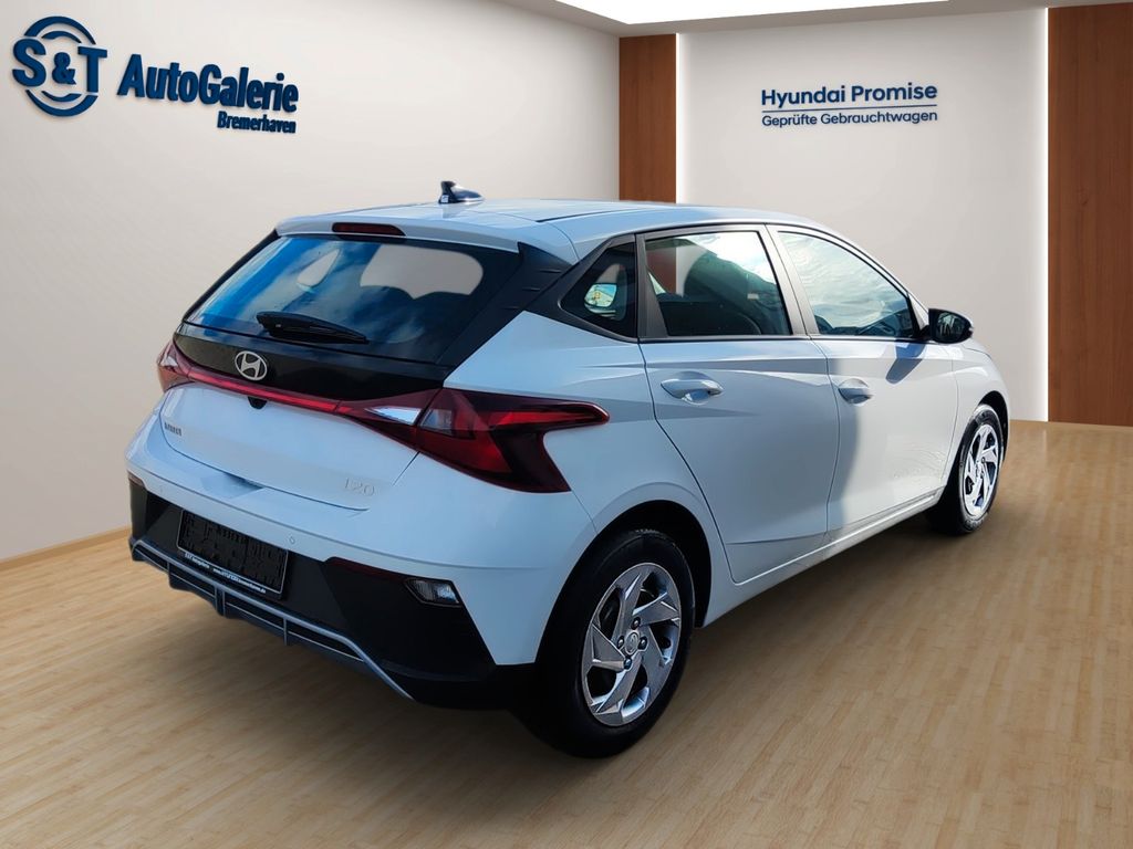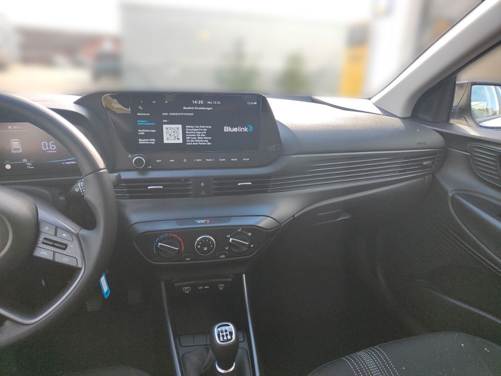 6 Lautsprecher, Airbag Beifahrerseite, Airbag Beifahrerseite abschaltbar, Airbag Fahrerseite, Audio-Navigationssystem, Audiosystem: Radio RDS, Außenspiegel elektr. verstell- und heizbar, beide, Außenspiegel lackiert, Blinkleuchte in Außenspiegel integriert, Bordcomputer, Dachspoiler, Dachspoiler Wagenfarbe, Einparkhilfe hinten, Einschaltautomatik für Fahrlicht / Lichtsensor, Elektron. Stabilitätskontrolle (ESC) mit Bremsassistent, Fahrassistenz-System: aktiver Spurhalteassistent (LKAS, Lane Keep Assist System), Fahrassistenz-System: Aufmerksamkeits-Assistent, Fahrassistenz-System: Autonome Notbremsfunktion inkl. Frontkollisionswarnung (FCA), Fahrassistenz-System: Berganfahrhilfe, Fahrassistenz-System: Fernlichtassistent, Fahrassistenz-System: Insassenalarm (ROA), Fahrassistenz-System: Multikollisionsbremse (Multi Collision Brake), Fahrassistenz-System: Sicherheitssystem mit automatischem Notruf (ERA GLONASS / eCall), Fahrassistenz-System: Verkehrszeichenerkennung, erweitert (Geschwindigkeits-Regel-/Begrenzeranlage), Fahrer-Informations-System (Display 4,2 Zoll), Fensterheber elektrisch hinten, Freisprecheinrichtung Bluetooth, Gepäck-/Laderaumleuchte, Gepäckraumabdeckung / Rollo, Gurtstraffer, Heckscheibe heizbar, Karosserie: 5-türig, Kopf-Airbag-System, Kopfstützen hinten verstellbar, Kühlergrill schwarz (mattlackiert), Lenkrad (4-Speichen), Lenksäule (Lenkrad) höhenverstellbar, Lenksäule (Lenkrad) längsverstellbar, Modellpflege, Motor 1,2 Ltr. - 58 kW KAT, Radioempfang digital (DAB+), Reifen-Reparaturkit, Reifendruck-Kontrollsystem, Rückfahrkamera, Rücksitzlehne geteilt/klappbar, Schadstoffarm nach Abgasnorm Euro 6e, Seitenairbag vorn, Service-System: Remote Services (Blue Link), Sitz vorn links höhenverstellbar, Sitzbezug / Polsterung: Stoff, Sonnenblenden mit Spiegel, Start/Stop-Anlage, Steckdose (12V-Anschluß) vorn, Türgriffe außen Wagenfarbe, USB-Anschluss (Typ C), USB-Anschluss hinten (Typ C), USB-Anschluss Mittelkonsole, Verglasung getönt, Warnanlage für Sicherheitsgurte, Fahrer-/Beifahrerseite, Wireless SmartLink (Apple CarPlay)