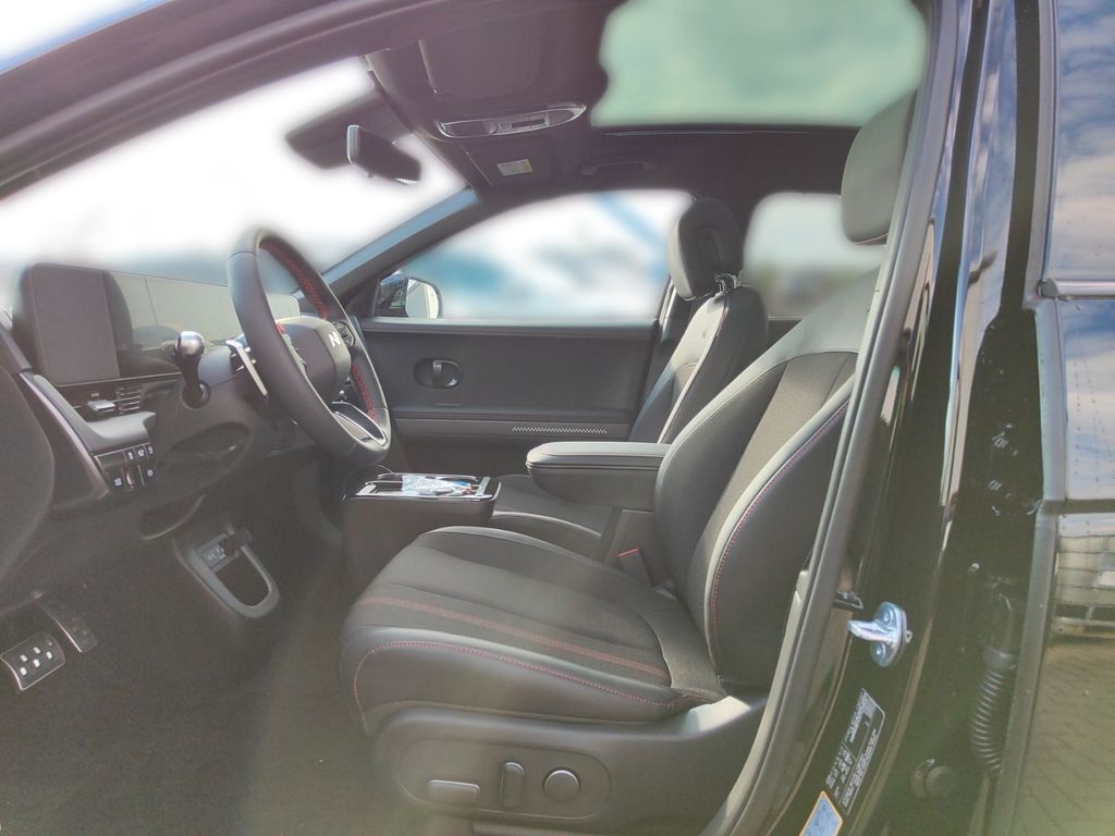 Airbag Beifahrerseite, Airbag Fahrerseite, Ambiente-Beleuchtung, Antriebsart: Allradantrieb, Applikationen am Fahrzeugheck (schwarz), Audio-Navigationssystem, Außenspiegel elektr. anklappbar, Außenspiegel elektr. verstell- und heizbar, beide, Außenspiegel Oberschale schwarz (Hochglanz), Außenspiegel Unterschale schwarz lackiert, Batterieheizsystem, Dachhimmel schwarz, Dachspoiler (grosse Ausführung), Digitaler Fahrzeugschlüssel im Smartphone, Einschaltautomatik für Fahrlicht / Lichtsensor, Elektromotor 239 kW (cont. 81 kW, Dual-Elektromotor), Elektron. Stabilitätskontrolle (ESC) mit Bremsassistent, Fahrassistenz-System: Aufmerksamkeits-Assistent, Fahrassistenz-System: Ausstiegswarnung, Fahrassistenz-System: Autobahnassistent 2.0 (Highway Driving Assist, HDA 2.0), Fahrassistenz-System: Autonome Notbremsfunktion inkl. Frontkollisionswarnung (FCA 2.0), Fahrassistenz-System: Berganfahrhilfe, Fahrassistenz-System: Einparkhilfe vorn und hinten, Fahrassistenz-System: Fahrprofilauswahl (Drive Mode), Fahrassistenz-System: Fernlichtassistent, Fahrassistenz-System: Insassenalarm (RSA), Fahrassistenz-System: Multikollisionsbremse (Multi Collision Brake), Fahrassistenz-System: Querverkehrs-Assistent Heck (Cross Traffic), Fahrassistenz-System: Sicherheitssystem mit automatischem Notruf (ERA GLONASS / eCall), Fahrassistenz-System: Spurfolgeassistent (Lane Following Assist, LFA), Fahrassistenz-System: Verkehrszeichenerkennung, erweitert (Geschwindigkeits-Regel-/Begrenzeranlage), Fensterheber elektrisch vorn und hinten, mit Auf-/Ab-Automatik, Freisprecheinrichtung Bluetooth, Frontscheibe Verbundglas, Geschwindigkeits-Regelanlage (Tempomat) mit Abstandsregelung ACC, Getriebe für Elektrofahrzeug, Head-up-Display, Heckklappe/-Deckel elektr. betätigt (Öffnung, sensorgesteuert), Heckleuchten LED (Pixel-Design), Heckscheibe heizbar, Heckscheibenwischer, HV-Batterie 84 kWh (Lithium-Ionen), Induktionsladeschale für Smartphone, Innenspiegel mit Abblendautomatik, Innenspiegel, digital mit Smart View (DCM), Instrumentenanzeige Farbdisplay 12,25 Zoll, Isofix-Aufnahmen für Kindersitz, Karosserie: 5-türig, Kindersicherung elektr. betätigt, Klimaautomatik 2-Zonen, Kopf-Airbag-System, Kühlergrill, Aktive Luftklappen, regelbar, Ladekabel mit Typ 2-Stecker, Ladevorrichtung On-Board-Lader (3-Phasen), LED-Paket, Lendenwirbelstütze Sitz vorn links, elektr. verstellbar, Lendenwirbelstütze Sitz vorn rechts, elektr. verstellbar, Lenkrad (Sport/Leder), Lenkrad mit Schaltwippen, Lenksäule (Lenkrad) höhenverstellbar, Lenksäule (Lenkrad) längsverstellbar, Leseleuchten vorn und hinten LED, LM-Felgen, Mittelarmlehne hinten, Modellpflege, Navigationsbasierte Adaptive Geschwindigkeitsregelanlage (Tempomat) mit Abstandsregelung (NSCC), Parkbremse elektrisch (EPB), Pedale Aluminium, Radlaufabdeckung vorn und hinten lackiert, Reifendruck-Kontrollsystem, Rückfahrkamera, Rücksitzbank verschiebbar, Rücksitzlehne geteilt/klappbar, Rücksitzlehne umklappbar mit Fernentriegelung im Kofferraum, Schalt-/Wählhebel (Shift by Wire), Seitenairbag vorn, Seitenairbag vorn mitte (Central Airbag), Seitenschutzleisten Wagenfarbe, Service-System: Online Update OTA (Over The Air), Service-System: Plug & Charge, Service-System: Remote Services (Blue Link), Sitz vorn links elektr. verstellbar, Sitz vorn links höhenverstellbar, Sitz vorn rechts elektr. verstellbar, Sitz vorn rechts höhenverstellbar, Sitzbezug / Polsterung: Stoff/Leder, Sitzheizung vorn, Sonnenblenden mit Spiegel, Sonnenschutzrollo an Türscheiben hinten, Sound-System BOSE, Start-Stop-Knopf, Steckdose (12V-Anschluß) 2.Sitzreihe, Steckdose (12V-Anschluß) im Koffer-/Laderaum, Türgriffe außen ausfahrbar / versenkbar, elektrisch, Türgriffe außen Wagenfarbe, Vehicle-to-Load Stecker (V2L), Verglasung Akustikglas, Verglasung hinten abgedunkelt (Privacy Glass), Vorheizsystem für Batterie, Wireless SmartLink (Apple CarPlay), Wärmepumpe für Heizungs-/Klimaanlage