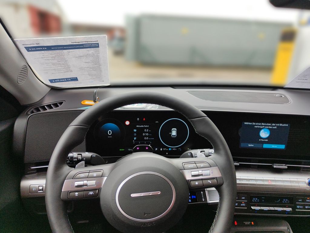 6 Lautsprecher, Airbag Beifahrerseite, Airbag Beifahrerseite abschaltbar, Airbag Fahrerseite, Ambiente-Beleuchtung, Applikationen am Fahrzeugheck (Silber), Audio-Navigationssystem, Audiosystem: Radio RDS, Außenspiegel elektr. anklappbar, Außenspiegel elektr. verstell- und heizbar, beide, Außenspiegel lackiert, Batterieheizsystem, Blinkleuchten LED in Außenspiegel integriert, Dachreling, Dachspoiler Wagenfarbe, Digital Cockpit (Instrumentenanzeige Digital), Effizienz-Paket, Einschaltautomatik für Fahrlicht / Lichtsensor, Elektromotor 150 KW (cont. 50), Fahrassistenz-System: aktiver Spurhalteassistent (LKAS, Lane Keep Assist System), Fahrassistenz-System: Aufmerksamkeits-Assistent (In Cabin Camera, ICC), Fahrassistenz-System: Autobahnassistent 1.5 (Highway Driving Assist, HDA 1.5), Fahrassistenz-System: Autonome Notbremsfunktion inkl. Frontkollisionswarnung (FCA), Fahrassistenz-System: Berganfahrhilfe, Fahrassistenz-System: Einparkhilfe vorn und hinten, Fahrassistenz-System: Fahrprofilauswahl (Drive Mode), Fahrassistenz-System: Fernlichtassistent, Fahrassistenz-System: Insassenalarm (RSA), Fahrassistenz-System: Multikollisionsbremse (Multi Collision Brake), Fahrassistenz-System: Sicherheitssystem mit automatischem Notruf (ERA GLONASS / eCall), Fahrassistenz-System: Spurfolgeassistent (Lane Following Assist, LFA), Fahrassistenz-System: Verkehrszeichenerkennung, erweitert (Geschwindigkeits-Regel-/Begrenzeranlage), Fensterheber elektrisch hinten, Fensterheber elektrisch vorn und hinten, mit Auf-/Ab-Automatik, Freisprecheinrichtung Bluetooth, Frontscheibe wärmedämmend, Frontstaufach / Frunk (Kofferraum, vorn), Gepäck-/Laderaumleuchte LED, Gepäckraumabdeckung / Rollo, Geschwindigkeits-Regelanlage (Tempomat) mit Abstandsregelung ACC, Getriebe für Elektrofahrzeug, Gurtstraffer, Heckleuchten LED, Heckscheibe heizbar, HV-Batterie 64,8 kWh (Lithium-Ionen), Induktionsladeschale für Smartphone, Innenspiegel mit Abblendautomatik, Isofix-Aufnahmen für Kindersitz, Karosserie: 5-türig, Klimaautomatik 2-Zonen, Kopf-Airbag-System, Kopfstützen hinten verstellbar, Ladeklappe beheizbar, Ladevorrichtung On-Board-Lader (3-Phasen), LED-Leuchtband am Heck, LED-Leuchtband vorn, Lendenwirbelstütze Sitz vorn links, elektr. verstellbar, Lenkrad (Leder) 3-Speichen, Lenkrad heizbar, Lenkrad mit Multifunktion, Lenkrad mit Schaltwippen, Lenksäule (Lenkrad) höhenverstellbar, Lenksäule (Lenkrad) längsverstellbar, Leseleuchten vorn und hinten LED, Leuchtweitenregelung, LM-Felgen, Luftdüsen hinten, Lüftungsgitter vorn unten schwarz, Mittelarmlehne hinten, Navigationsbasierte Adaptive Geschwindigkeitsregelanlage (Tempomat) mit Abstandsregelung (NSCC), Nebelschlussleuchte, Notladekabel (ICCB), Parkbremse elektrisch (EPB), Projektor-Scheinwerfer LED, Radioempfang digital (DAB+), Radlaufabdeckung vorn und hinten lackiert, Radstand Standard, Reifen-Reparaturkit, Reifendruck-Kontrollsystem, Rückfahrkamera, Rücksitzlehne geteilt/klappbar, Schalt-/Wählhebel (Shift by Wire), Scheibenbeschlagerkennung / Regelung, Seitenairbag vorn, Seitenairbag vorn mitte (Central Airbag), Service-System: Online Update OTA (Over The Air), Service-System: Plug & Charge, Service-System: Remote Services (Blue Link), Sicherheitsgurte vorn höhenverstellbar, Sitz vorn links höhenverstellbar, Sitz vorn rechts höhenverstellbar, Sitzbezug / Polsterung: Stoff, Sitzheizung vorn, Smartphone Schnittstelle (Apple CarPlay & Android Auto), Sonnenblenden mit Spiegel (beleuchtet), Start-Stop-Knopf, Start/Stop-Anlage, Stoßfänger vorn mit Applikationen (Silber), Touchscreen-Farbdisplay (12,25 Zoll), Türgriffe außen Wagenfarbe, USB-Anschluss (Typ C, 2-fach), USB-Anschluss Mittelkonsole, USB-Ladeanschlüsse (2-fach, Typ C) für 2.Sitzreihe, Verglasung Akustikglas, Verglasung getönt, Verglasung hinten abgedunkelt (Privacy Glass), Vorheizsystem für Batterie, Warnanlage für Sicherheitsgurte, Fahrer-/Beifahrerseite