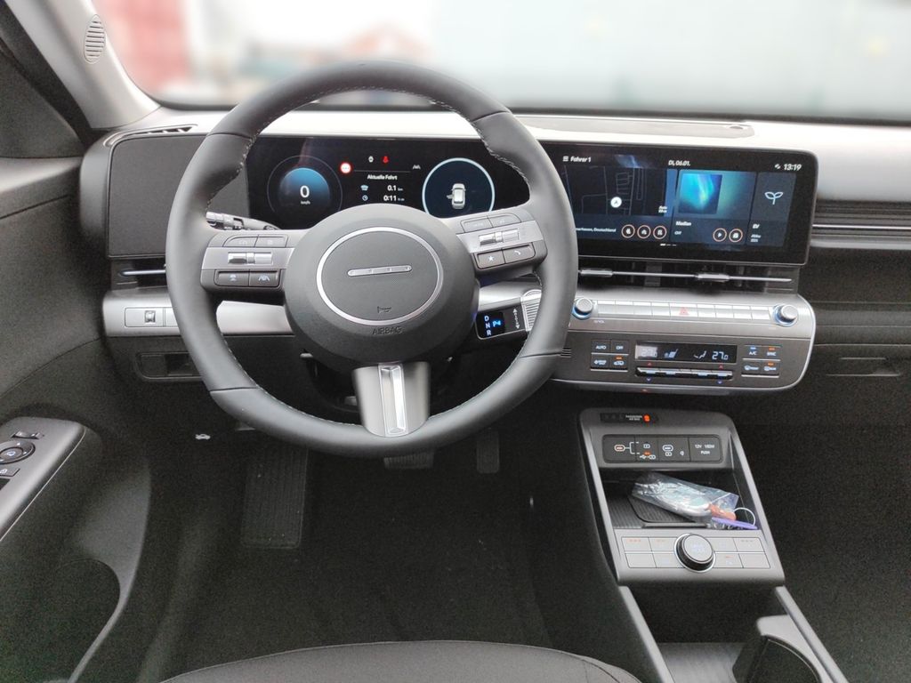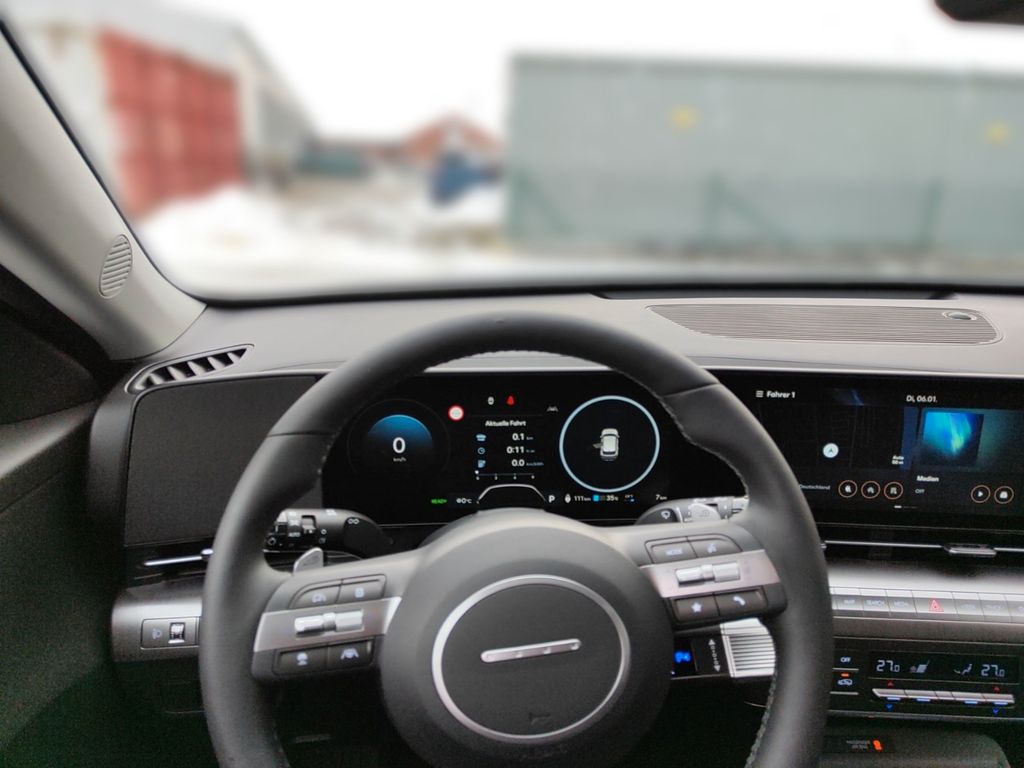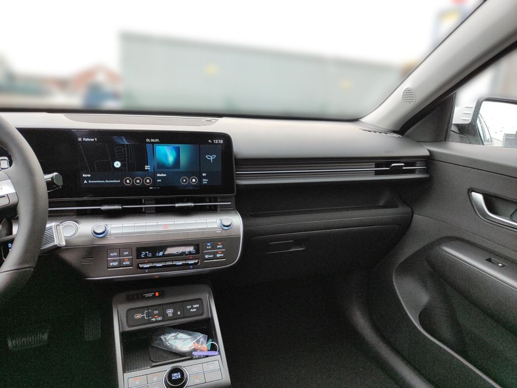 6 Lautsprecher, Airbag Beifahrerseite, Airbag Beifahrerseite abschaltbar, Airbag Fahrerseite, Ambiente-Beleuchtung, Applikationen am Fahrzeugheck (Silber), Audio-Navigationssystem, Audiosystem: Radio RDS, Außenspiegel elektr. anklappbar, Außenspiegel elektr. verstell- und heizbar, beide, Außenspiegel lackiert, Batterieheizsystem, Blinkleuchten LED in Außenspiegel integriert, Dachreling, Dachspoiler Wagenfarbe, Digital Cockpit (Instrumentenanzeige Digital), Effizienz-Paket, Einschaltautomatik für Fahrlicht / Lichtsensor, Elektromotor 150 KW (cont. 50), Fahrassistenz-System: aktiver Spurhalteassistent (LKAS, Lane Keep Assist System), Fahrassistenz-System: Aufmerksamkeits-Assistent (In Cabin Camera, ICC), Fahrassistenz-System: Autobahnassistent 1.5 (Highway Driving Assist, HDA 1.5), Fahrassistenz-System: Autonome Notbremsfunktion inkl. Frontkollisionswarnung (FCA), Fahrassistenz-System: Berganfahrhilfe, Fahrassistenz-System: Einparkhilfe vorn und hinten, Fahrassistenz-System: Fahrprofilauswahl (Drive Mode), Fahrassistenz-System: Fernlichtassistent, Fahrassistenz-System: Insassenalarm (RSA), Fahrassistenz-System: Multikollisionsbremse (Multi Collision Brake), Fahrassistenz-System: Sicherheitssystem mit automatischem Notruf (ERA GLONASS / eCall), Fahrassistenz-System: Spurfolgeassistent (Lane Following Assist, LFA), Fahrassistenz-System: Verkehrszeichenerkennung, erweitert (Geschwindigkeits-Regel-/Begrenzeranlage), Fensterheber elektrisch hinten, Fensterheber elektrisch vorn und hinten, mit Auf-/Ab-Automatik, Freisprecheinrichtung Bluetooth, Frontscheibe wärmedämmend, Frontstaufach / Frunk (Kofferraum, vorn), Gepäck-/Laderaumleuchte LED, Gepäckraumabdeckung / Rollo, Geschwindigkeits-Regelanlage (Tempomat) mit Abstandsregelung ACC, Getriebe für Elektrofahrzeug, Gurtstraffer, Heckleuchten LED, Heckscheibe heizbar, HV-Batterie 64,8 kWh (Lithium-Ionen), Induktionsladeschale für Smartphone, Innenspiegel mit Abblendautomatik, Isofix-Aufnahmen für Kindersitz, Karosserie: 5-türig, Klimaautomatik 2-Zonen, Kopf-Airbag-System, Kopfstützen hinten verstellbar, Kühlergrill, Aktive Luftklappen, regelbar, Ladeklappe beheizbar, Ladevorrichtung On-Board-Lader (3-Phasen), LED-Leuchtband am Heck, LED-Leuchtband vorn, Lendenwirbelstütze Sitz vorn links, elektr. verstellbar, Lenkrad (Leder) 3-Speichen, Lenkrad heizbar, Lenkrad mit Multifunktion, Lenkrad mit Schaltwippen, Lenksäule (Lenkrad) höhenverstellbar, Lenksäule (Lenkrad) längsverstellbar, Leseleuchten vorn und hinten LED, Leuchtweitenregelung, LM-Felgen, Luftdüsen hinten, Lüftungsgitter vorn unten schwarz, Mittelarmlehne hinten, Navigationsbasierte Adaptive Geschwindigkeitsregelanlage (Tempomat) mit Abstandsregelung (NSCC), Nebelschlussleuchte, Notladekabel (ICCB), Parkbremse elektrisch (EPB), Projektor-Scheinwerfer LED, Radioempfang digital (DAB+), Radlaufabdeckung vorn und hinten lackiert, Radstand Standard, Reifen-Reparaturkit, Reifendruck-Kontrollsystem, Rückfahrkamera, Rücksitzlehne geteilt/klappbar, Schalt-/Wählhebel (Shift by Wire), Scheibenbeschlagerkennung / Regelung, Seitenairbag vorn, Seitenairbag vorn mitte (Central Airbag), Service-System: Online Update OTA (Over The Air), Service-System: Plug & Charge, Service-System: Remote Services (Blue Link), Sicherheitsgurte vorn höhenverstellbar, Sitz vorn links höhenverstellbar, Sitz vorn rechts höhenverstellbar, Sitzbezug / Polsterung: Stoff, Sitzheizung vorn, Smartphone Schnittstelle (Apple CarPlay & Android Auto), Sonnenblenden mit Spiegel (beleuchtet), Start-Stop-Knopf, Start/Stop-Anlage, Stoßfänger vorn mit Applikationen (Silber), Touchscreen-Farbdisplay (12,25 Zoll), Türgriffe außen Wagenfarbe, USB-Anschluss (Typ C, 2-fach), USB-Anschluss Mittelkonsole, USB-Ladeanschlüsse (2-fach, Typ C) für 2.Sitzreihe, Verglasung Akustikglas, Verglasung getönt, Verglasung hinten abgedunkelt (Privacy Glass), Vorheizsystem für Batterie, Warnanlage für Sicherheitsgurte, Fahrer-/Beifahrerseite