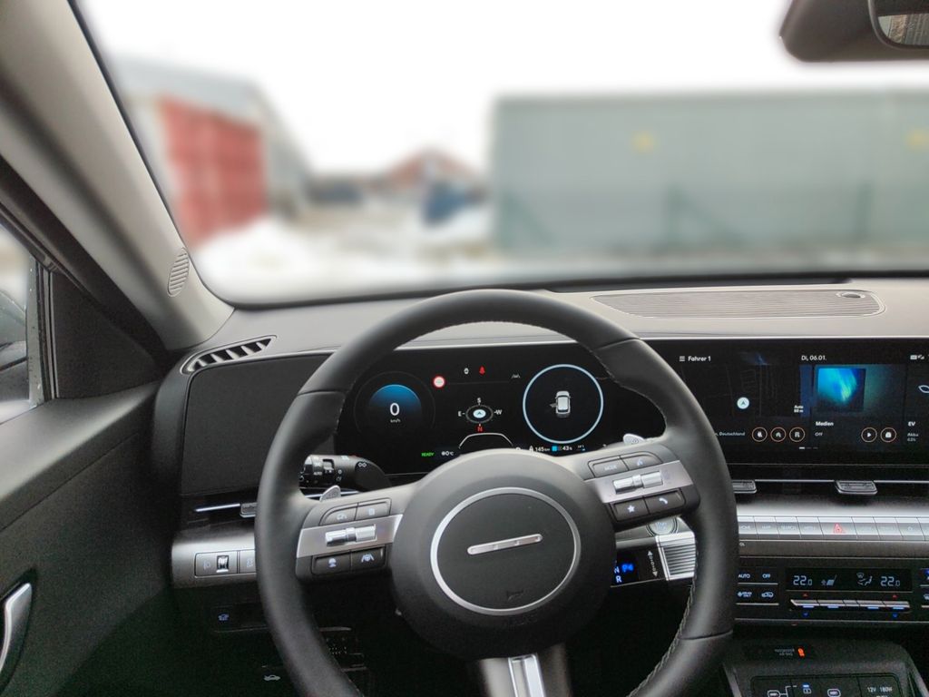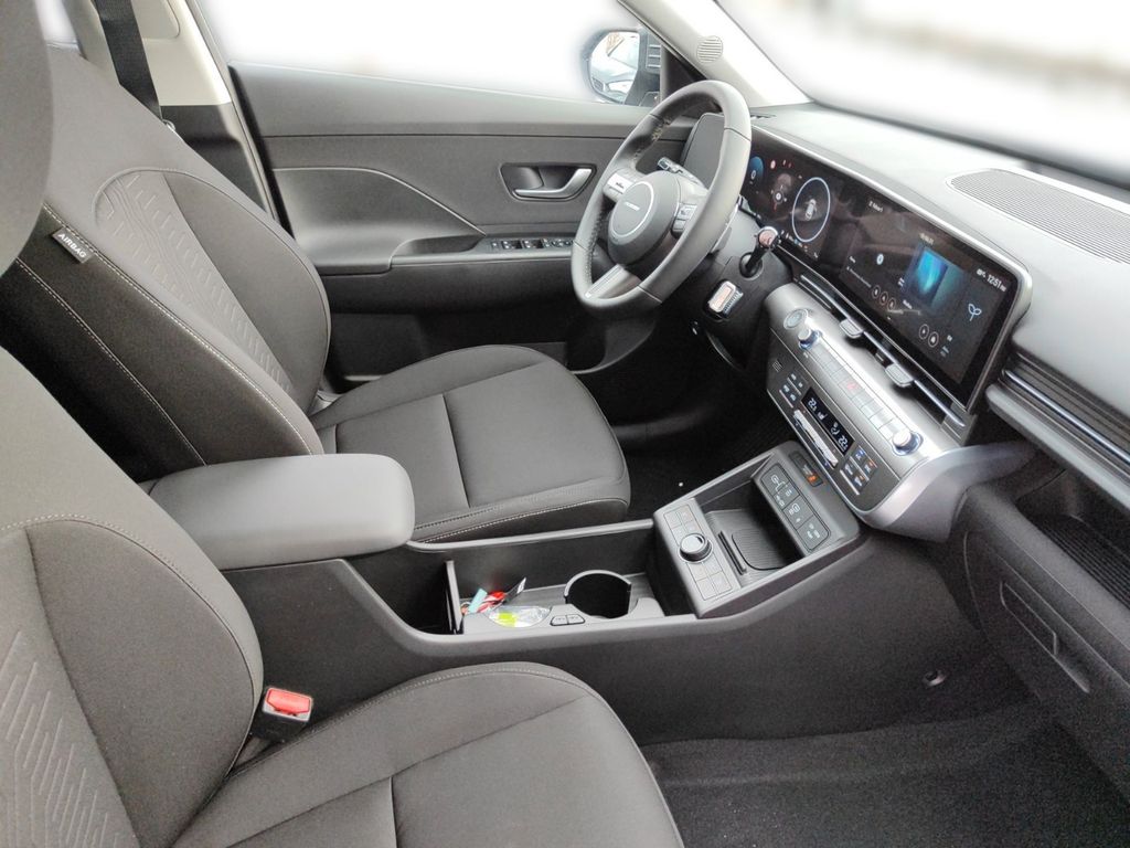 6 Lautsprecher, Airbag Beifahrerseite, Airbag Beifahrerseite abschaltbar, Airbag Fahrerseite, Ambiente-Beleuchtung, Applikationen am Fahrzeugheck (Silber), Audio-Navigationssystem, Audiosystem: Radio RDS, Außenspiegel elektr. anklappbar, Außenspiegel elektr. verstell- und heizbar, beide, Außenspiegel lackiert, Batterieheizsystem, Blinkleuchten LED in Außenspiegel integriert, Dachreling, Dachspoiler Wagenfarbe, Digital Cockpit (Instrumentenanzeige Digital), Effizienz-Paket, Einschaltautomatik für Fahrlicht / Lichtsensor, Elektromotor 150 KW (cont. 50), Fahrassistenz-System: aktiver Spurhalteassistent (LKAS, Lane Keep Assist System), Fahrassistenz-System: Aufmerksamkeits-Assistent (In Cabin Camera, ICC), Fahrassistenz-System: Autobahnassistent 1.5 (Highway Driving Assist, HDA 1.5), Fahrassistenz-System: Autonome Notbremsfunktion inkl. Frontkollisionswarnung (FCA), Fahrassistenz-System: Berganfahrhilfe, Fahrassistenz-System: Einparkhilfe vorn und hinten, Fahrassistenz-System: Fahrprofilauswahl (Drive Mode), Fahrassistenz-System: Fernlichtassistent, Fahrassistenz-System: Insassenalarm (RSA), Fahrassistenz-System: Multikollisionsbremse (Multi Collision Brake), Fahrassistenz-System: Sicherheitssystem mit automatischem Notruf (ERA GLONASS / eCall), Fahrassistenz-System: Spurfolgeassistent (Lane Following Assist, LFA), Fahrassistenz-System: Verkehrszeichenerkennung, erweitert (Geschwindigkeits-Regel-/Begrenzeranlage), Fensterheber elektrisch hinten, Fensterheber elektrisch vorn und hinten, mit Auf-/Ab-Automatik, Freisprecheinrichtung Bluetooth, Frontscheibe wärmedämmend, Frontstaufach / Frunk (Kofferraum, vorn), Gepäck-/Laderaumleuchte LED, Gepäckraumabdeckung / Rollo, Geschwindigkeits-Regelanlage (Tempomat) mit Abstandsregelung ACC, Getriebe für Elektrofahrzeug, Gurtstraffer, Heckleuchten LED, Heckscheibe heizbar, HV-Batterie 64,8 kWh (Lithium-Ionen), Induktionsladeschale für Smartphone, Innenspiegel mit Abblendautomatik, Isofix-Aufnahmen für Kindersitz, Karosserie: 5-türig, Klimaautomatik 2-Zonen, Kopf-Airbag-System, Kopfstützen hinten verstellbar, Ladeklappe beheizbar, Ladevorrichtung On-Board-Lader (3-Phasen), LED-Leuchtband am Heck, LED-Leuchtband vorn, Lendenwirbelstütze Sitz vorn links, elektr. verstellbar, Lenkrad (Leder) 3-Speichen, Lenkrad heizbar, Lenkrad mit Multifunktion, Lenkrad mit Schaltwippen, Lenksäule (Lenkrad) höhenverstellbar, Lenksäule (Lenkrad) längsverstellbar, Leseleuchten vorn und hinten LED, Leuchtweitenregelung, LM-Felgen, Luftdüsen hinten, Lüftungsgitter vorn unten schwarz, Mittelarmlehne hinten, Navigationsbasierte Adaptive Geschwindigkeitsregelanlage (Tempomat) mit Abstandsregelung (NSCC), Nebelschlussleuchte, Notladekabel (ICCB), Parkbremse elektrisch (EPB), Projektor-Scheinwerfer LED, Radioempfang digital (DAB+), Radlaufabdeckung vorn und hinten lackiert, Radstand Standard, Reifen-Reparaturkit, Reifendruck-Kontrollsystem, Rückfahrkamera, Rücksitzlehne geteilt/klappbar, Schalt-/Wählhebel (Shift by Wire), Scheibenbeschlagerkennung / Regelung, Seitenairbag vorn, Seitenairbag vorn mitte (Central Airbag), Service-System: Online Update OTA (Over The Air), Service-System: Plug & Charge, Service-System: Remote Services (Blue Link), Sicherheitsgurte vorn höhenverstellbar, Sitz vorn links höhenverstellbar, Sitz vorn rechts höhenverstellbar, Sitzbezug / Polsterung: Stoff, Sitzheizung vorn, Smartphone Schnittstelle (Apple CarPlay & Android Auto), Sonnenblenden mit Spiegel (beleuchtet), Start-Stop-Knopf, Start/Stop-Anlage, Stoßfänger vorn mit Applikationen (Silber), Touchscreen-Farbdisplay (12,25 Zoll), Türgriffe außen Wagenfarbe, USB-Anschluss (Typ C, 2-fach), USB-Anschluss Mittelkonsole, USB-Ladeanschlüsse (2-fach, Typ C) für 2.Sitzreihe, Verglasung Akustikglas, Verglasung getönt, Verglasung hinten abgedunkelt (Privacy Glass), Vorheizsystem für Batterie, Warnanlage für Sicherheitsgurte, Fahrer-/Beifahrerseite