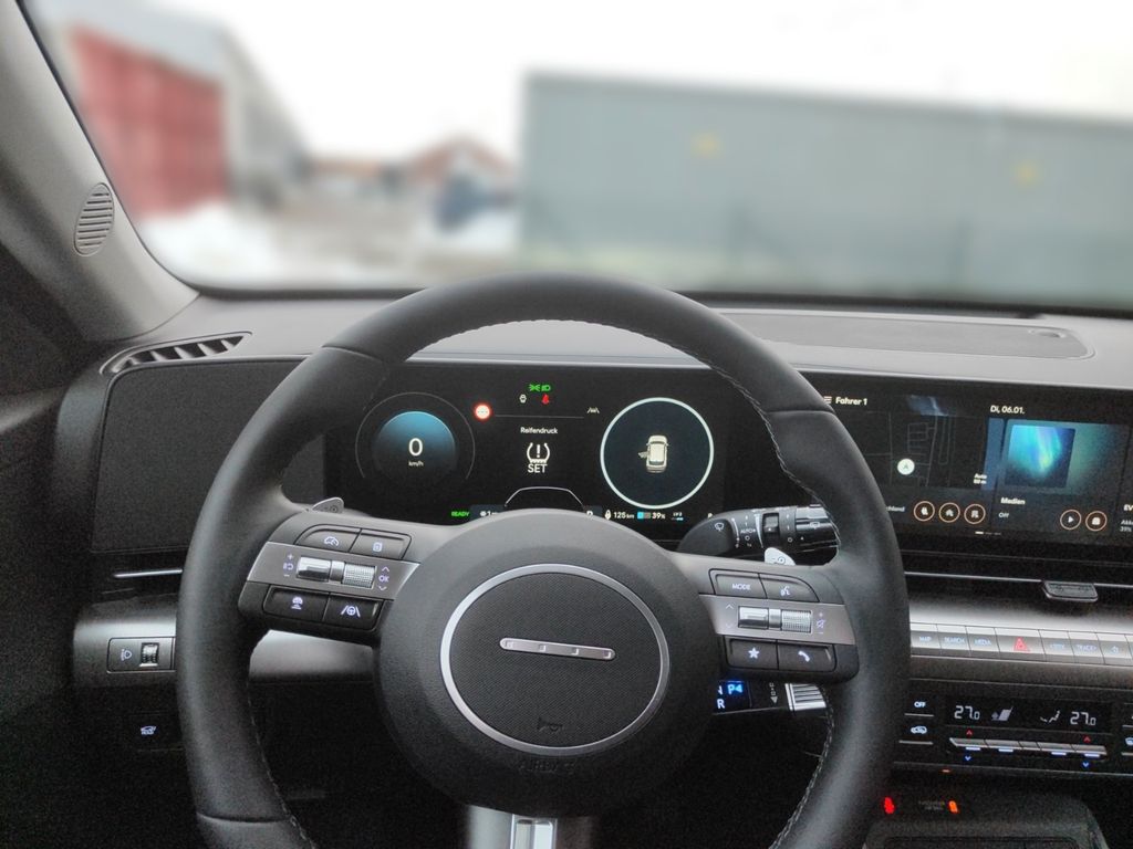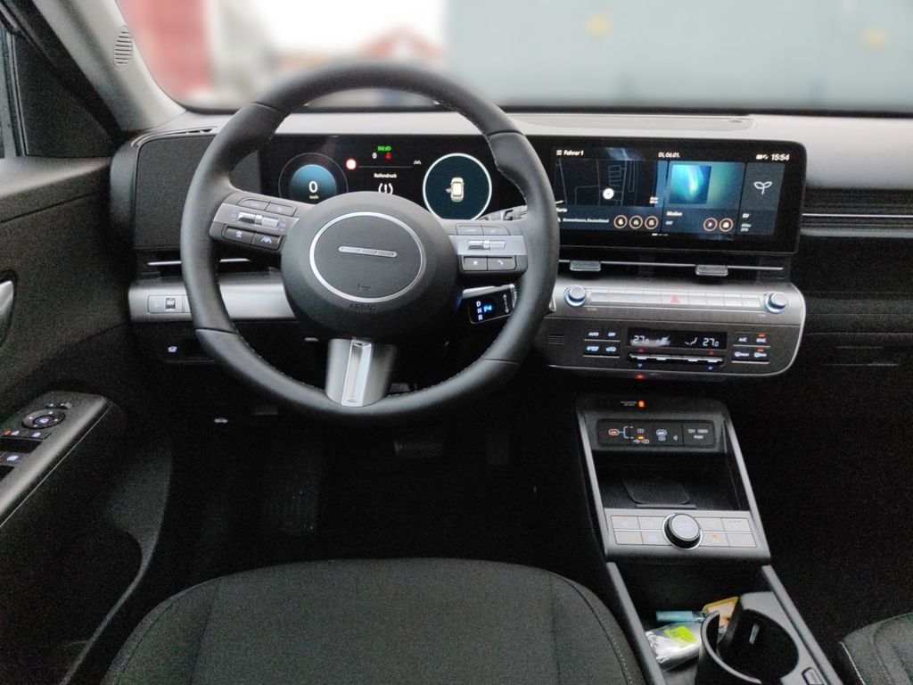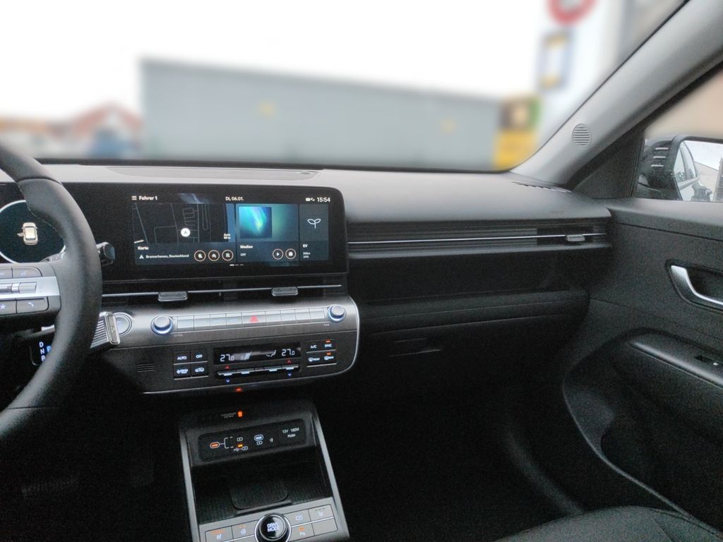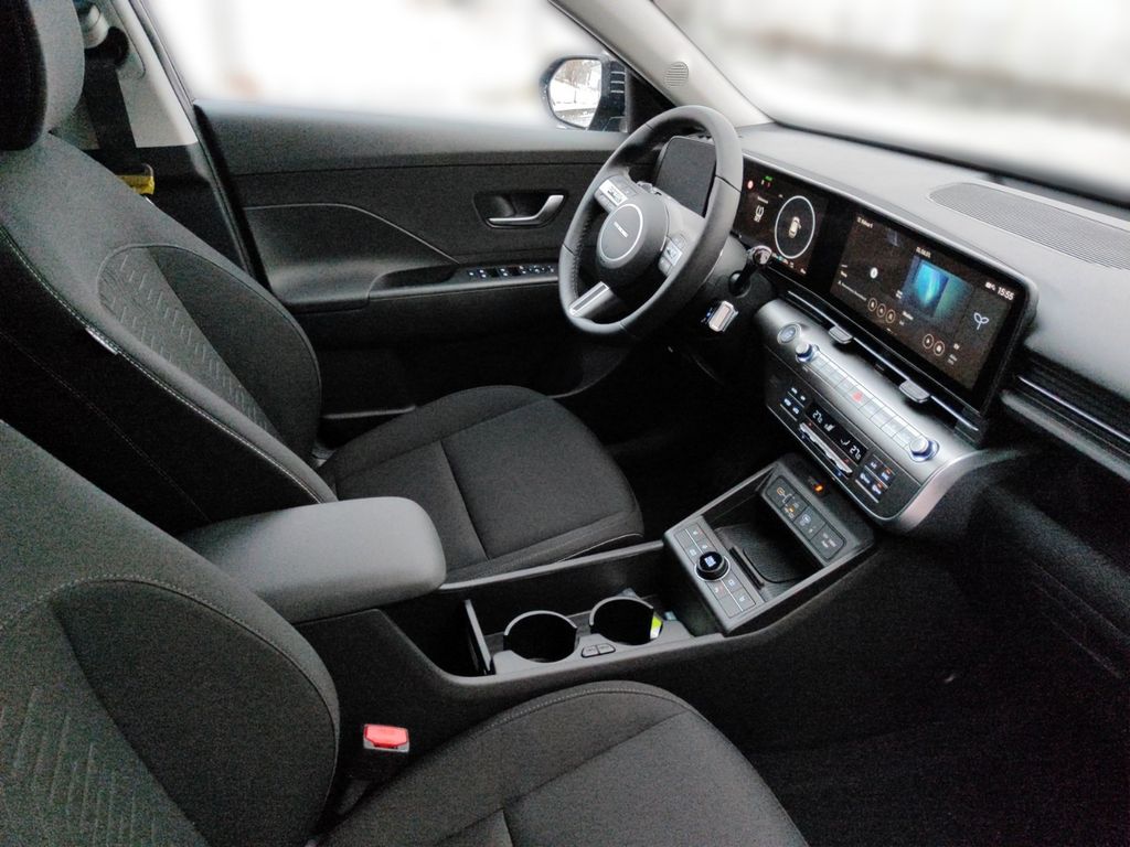 6 Lautsprecher, Airbag Beifahrerseite, Airbag Beifahrerseite abschaltbar, Airbag Fahrerseite, Ambiente-Beleuchtung, Applikationen am Fahrzeugheck (Silber), Audio-Navigationssystem, Audiosystem: Radio RDS, Außenspiegel elektr. anklappbar, Außenspiegel elektr. verstell- und heizbar, beide, Außenspiegel lackiert, Batterieheizsystem, Blinkleuchten LED in Außenspiegel integriert, Dachreling, Dachspoiler Wagenfarbe, Digital Cockpit (Instrumentenanzeige Digital), Effizienz-Paket, Einschaltautomatik für Fahrlicht / Lichtsensor, Elektromotor 150 KW (cont. 50), Fahrassistenz-System: aktiver Spurhalteassistent (LKAS, Lane Keep Assist System), Fahrassistenz-System: Aufmerksamkeits-Assistent (In Cabin Camera, ICC), Fahrassistenz-System: Autobahnassistent 1.5 (Highway Driving Assist, HDA 1.5), Fahrassistenz-System: Autonome Notbremsfunktion inkl. Frontkollisionswarnung (FCA), Fahrassistenz-System: Berganfahrhilfe, Fahrassistenz-System: Einparkhilfe vorn und hinten, Fahrassistenz-System: Fahrprofilauswahl (Drive Mode), Fahrassistenz-System: Fernlichtassistent, Fahrassistenz-System: Insassenalarm (RSA), Fahrassistenz-System: Multikollisionsbremse (Multi Collision Brake), Fahrassistenz-System: Sicherheitssystem mit automatischem Notruf (ERA GLONASS / eCall), Fahrassistenz-System: Spurfolgeassistent (Lane Following Assist, LFA), Fahrassistenz-System: Verkehrszeichenerkennung, erweitert (Geschwindigkeits-Regel-/Begrenzeranlage), Fensterheber elektrisch hinten, Fensterheber elektrisch vorn und hinten, mit Auf-/Ab-Automatik, Freisprecheinrichtung Bluetooth, Frontscheibe wärmedämmend, Frontstaufach / Frunk (Kofferraum, vorn), Gepäck-/Laderaumleuchte LED, Gepäckraumabdeckung / Rollo, Geschwindigkeits-Regelanlage (Tempomat) mit Abstandsregelung ACC, Getriebe für Elektrofahrzeug, Gurtstraffer, Heckleuchten LED, Heckscheibe heizbar, HV-Batterie 64,8 kWh (Lithium-Ionen), Induktionsladeschale für Smartphone, Innenspiegel mit Abblendautomatik, Isofix-Aufnahmen für Kindersitz, Karosserie: 5-türig, Klimaautomatik 2-Zonen, Kopf-Airbag-System, Kopfstützen hinten verstellbar, Ladeklappe beheizbar, Ladevorrichtung On-Board-Lader (3-Phasen), LED-Leuchtband am Heck, LED-Leuchtband vorn, Lendenwirbelstütze Sitz vorn links, elektr. verstellbar, Lenkrad (Leder) 3-Speichen, Lenkrad heizbar, Lenkrad mit Multifunktion, Lenkrad mit Schaltwippen, Lenksäule (Lenkrad) höhenverstellbar, Lenksäule (Lenkrad) längsverstellbar, Leseleuchten vorn und hinten LED, Leuchtweitenregelung, LM-Felgen, Luftdüsen hinten, Lüftungsgitter vorn unten schwarz, Mittelarmlehne hinten, Navigationsbasierte Adaptive Geschwindigkeitsregelanlage (Tempomat) mit Abstandsregelung (NSCC), Nebelschlussleuchte, Notladekabel (ICCB), Parkbremse elektrisch (EPB), Projektor-Scheinwerfer LED, Radioempfang digital (DAB+), Radlaufabdeckung vorn und hinten lackiert, Radstand Standard, Reifen-Reparaturkit, Reifendruck-Kontrollsystem, Rückfahrkamera, Rücksitzlehne geteilt/klappbar, Schalt-/Wählhebel (Shift by Wire), Scheibenbeschlagerkennung / Regelung, Seitenairbag vorn, Seitenairbag vorn mitte (Central Airbag), Service-System: Online Update OTA (Over The Air), Service-System: Plug & Charge, Service-System: Remote Services (Blue Link), Sicherheitsgurte vorn höhenverstellbar, Sitz vorn links höhenverstellbar, Sitz vorn rechts höhenverstellbar, Sitzbezug / Polsterung: Stoff, Sitzheizung vorn, Smartphone Schnittstelle (Apple CarPlay & Android Auto), Sonnenblenden mit Spiegel (beleuchtet), Start-Stop-Knopf, Start/Stop-Anlage, Stoßfänger vorn mit Applikationen (Silber), Touchscreen-Farbdisplay (12,25 Zoll), Türgriffe außen Wagenfarbe, USB-Anschluss (Typ C, 2-fach), USB-Anschluss Mittelkonsole, USB-Ladeanschlüsse (2-fach, Typ C) für 2.Sitzreihe, Verglasung Akustikglas, Verglasung getönt, Verglasung hinten abgedunkelt (Privacy Glass), Vorheizsystem für Batterie, Warnanlage für Sicherheitsgurte, Fahrer-/Beifahrerseite