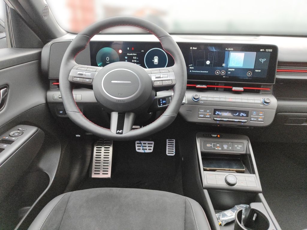 Airbag Beifahrerseite, Airbag Beifahrerseite abschaltbar, Airbag Fahrerseite, Ambiente-Beleuchtung, Applikationen am Fahrzeugheck (Silber), Assistenz-Paket, Audio-Navigationssystem, Außenspiegel Abyss Black, Außenspiegel elektr. anklappbar, Außenspiegel elektr. verstell- und heizbar, beide, Dachhimmel schwarz, Dachreling, Dachspoiler Wagenfarbe, Dachspoiler Wagenfarbe, Zierleisten verchromt, Digital Cockpit (Instrumentenanzeige Digital), Digitaler Fahrzeugschlüssel im Smartphone, Doppelendrohr Auspuffanlage, Einschaltautomatik für Fahrlicht / Lichtsensor, Fahrassistenz-System: aktiver Spurhalteassistent (LKAS, Lane Keep Assist System), Fahrassistenz-System: Aufmerksamkeits-Assistent (In Cabin Camera, ICC), Fahrassistenz-System: Autobahnassistent 1.5 (Highway Driving Assist, HDA 1.5), Fahrassistenz-System: Autonome Notbremsfunktion inkl. Frontkollisionswarnung (FCA), Fahrassistenz-System: Berganfahrhilfe, Fahrassistenz-System: Einparkhilfe vorn und hinten, Fahrassistenz-System: Fahrprofilauswahl (Drive Mode), Fahrassistenz-System: Fernlichtassistent, Fahrassistenz-System: Insassenalarm (RSA), Fahrassistenz-System: Multikollisionsbremse (Multi Collision Brake), Fahrassistenz-System: Sicherheitssystem mit automatischem Notruf (ERA GLONASS / eCall), Fahrassistenz-System: Spurfolgeassistent (Lane Following Assist, LFA), Fahrassistenz-System: Verkehrszeichenerkennung, erweitert (Geschwindigkeits-Regel-/Begrenzeranlage), Fensterheber elektrisch hinten, Fensterheber elektrisch vorn und hinten, mit Auf-/Ab-Automatik, Freisprecheinrichtung Bluetooth, Frontscheibe wärmedämmend, Funktions-Paket, Gepäck-/Laderaumleuchte LED, Gepäcknetz im Koffer-/Laderaum, Gepäckraumabdeckung / Rollo, Gurtstraffer, Heckklappe/-Deckel elektr. betätigt (Öffnung, sensorgesteuert), Heckleuchten LED, Heckscheibe heizbar, Hybrid 102 kW (Motor 1,6 Ltr. - 75 kW), Induktionsladeschale für Smartphone, Innenspiegel mit Abblendautomatik, Isofix-Aufnahmen für Kindersitz, Karosserie: 5-türig, Klimaautomatik 2-Zonen, Kopf-Airbag-System, Kopfstützen hinten verstellbar, Kühlergrill, Aktive Luftklappen, regelbar, LED-Leuchtband am Heck, Lendenwirbelstütze Sitz vorn links, elektr. verstellbar, Lenkrad (Leder) 3-Speichen, Lenkrad mit Multifunktion, Lenkrad mit Schaltwippen, Lenksäule (Lenkrad) höhenverstellbar, Lenksäule (Lenkrad) längsverstellbar, Leseleuchten vorn und hinten LED, Leuchtweitenregelung, Licht-Paket, LM-Felgen, Luftdüsen hinten, Mittelarmlehne hinten, Nebelschlussleuchte, Otto-Partikelfilter (OPF), Parkbremse elektrisch (EPB), Radioempfang digital (DAB+), Radstand Standard, Reifen-Reparaturkit, Reifendruck-Kontrollsystem, Rücksitzlehne geteilt/klappbar, Schadstoffarm nach Abgasnorm Euro 6e, Schalt-/Wählhebel (Shift by Wire), Schalt-/Wählhebelgriff mit farbigen Applikationen, Seitenairbag vorn, Seitenairbag vorn mitte (Central Airbag), Service-System: Remote Services (Blue Link), Sicherheitsgurte vorn höhenverstellbar, Sitz vorn links elektr. verstellbar, Sitz vorn links höhenverstellbar, Sitz vorn rechts elektr. verstellbar, Sitz vorn rechts höhenverstellbar, Sitzbezug / Polsterung: Leder/Alcantara, Smartphone Schnittstelle (Apple CarPlay & Android Auto), Sonnenblenden mit Spiegel (beleuchtet), Sound-System BOSE, Start-Stop-Knopf, Start/Stop-Anlage, Stoßfänger vorn mit Applikationen (Silber), Touchscreen-Farbdisplay (12,25 Zoll), Türgriffe außen Wagenfarbe, Türgriffe innen lackiert, USB-Anschluss (Typ C, 2-fach), USB-Anschluss Mittelkonsole, USB-Ladeanschlüsse (2-fach, Typ C) für 2.Sitzreihe, Verglasung Akustikglas, Verglasung getönt, Verglasung hinten abgedunkelt (Privacy Glass), Warnanlage für Sicherheitsgurte, Fahrer-/Beifahrerseite