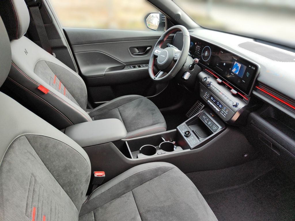 6 Lautsprecher, Airbag Beifahrerseite, Airbag Beifahrerseite abschaltbar, Airbag Fahrerseite, Ambiente-Beleuchtung, Applikationen am Fahrzeugheck (Silber), Audio-Navigationssystem, Außenspiegel Abyss Black, Außenspiegel elektr. anklappbar, Außenspiegel elektr. verstell- und heizbar, beide, Dachreling, Dachspoiler Wagenfarbe, Digital Cockpit (Instrumentenanzeige Digital), Doppelendrohr Auspuffanlage, Einschaltautomatik für Fahrlicht / Lichtsensor, Fahrassistenz-System: aktiver Spurhalteassistent (LKAS, Lane Keep Assist System), Fahrassistenz-System: Aufmerksamkeits-Assistent (In Cabin Camera, ICC), Fahrassistenz-System: Ausstiegswarnung, Fahrassistenz-System: Autobahnassistent 1.5 (Highway Driving Assist, HDA 1.5), Fahrassistenz-System: Autonome Notbremsfunktion inkl. Frontkollisionswarnung (FCA), Fahrassistenz-System: Bergabfahr-Assistent, Fahrassistenz-System: Berganfahrhilfe, Fahrassistenz-System: Einparkhilfe vorn und hinten, Fahrassistenz-System: Fahrprofilauswahl (Drive Mode), Fahrassistenz-System: Fernlichtassistent, Fahrassistenz-System: Insassenalarm (RSA), Fahrassistenz-System: Multikollisionsbremse (Multi Collision Brake), Fahrassistenz-System: Querverkehrs-Assistent Heck (Cross Traffic), Fahrassistenz-System: Sicherheitssystem mit automatischem Notruf (ERA GLONASS / eCall), Fahrassistenz-System: Spurfolgeassistent (Lane Following Assist, LFA), Fahrassistenz-System: Totwinkel-Assistent, Fahrassistenz-System: Verkehrszeichenerkennung, erweitert (Geschwindigkeits-Regel-/Begrenzeranlage), Fensterheber elektrisch hinten, Fensterheber elektrisch vorn und hinten, mit Auf-/Ab-Automatik, Freisprecheinrichtung Bluetooth, Frontscheibe wärmedämmend, Funktions-Paket, Gepäck-/Laderaumleuchte LED, Gepäcknetz im Koffer-/Laderaum, Gepäckraumabdeckung / Rollo, Geschwindigkeits-Regelanlage (Tempomat) mit Abstandsregelung ACC, Getriebe 7-Gang - Doppelkupplungsgetriebe DCT, Gurtstraffer, Heckklappe/-Deckel elektr. betätigt (Öffnung, sensorgesteuert), Heckleuchten LED, Heckscheibe heizbar, Induktionsladeschale für Smartphone, Innenspiegel mit Abblendautomatik, Isofix-Aufnahmen für Kindersitz, Karosserie: 5-türig, Kopf-Airbag-System, Kopfstützen hinten verstellbar, LED-Leuchtband am Heck, Lendenwirbelstütze Sitz vorn links, elektr. verstellbar, Lenkrad (Leder) 3-Speichen, Lenkrad mit Multifunktion, Lenkrad mit Schaltwippen, Lenksäule (Lenkrad) höhenverstellbar, Lenksäule (Lenkrad) längsverstellbar, Leseleuchten vorn und hinten LED, Leuchtweitenregelung, Licht-Paket, Lifetime MapCare (Internetbasierende Dienste), LM-Felgen, Luftdüsen hinten, Mittelarmlehne hinten, Motor 1,6 Ltr. - 102 kW T-GDI KAT, Navigationsbasierte Adaptive Geschwindigkeitsregelanlage (Tempomat) mit Abstandsregelung (NSCC), Nebelschlussleuchte, Otto-Partikelfilter (OPF), Parkbremse elektrisch (EPB), Radioempfang digital (DAB+), Radstand Standard, Reifen-Reparaturkit, Reifendruck-Kontrollsystem, Rückfahrkamera, Rücksitzlehne geteilt/klappbar, Schadstoffarm nach Abgasnorm Euro 6e, Schalt-/Wählhebel (Shift by Wire), Schalt-/Wählhebelgriff mit farbigen Applikationen, Seitenairbag vorn, Seitenairbag vorn mitte (Central Airbag), Service-System: Online Update OTA (Over The Air), Service-System: Remote Services (Blue Link), Sicherheitsgurte vorn höhenverstellbar, Sitz vorn links elektr. verstellbar, Sitz vorn links höhenverstellbar, Sitz vorn rechts elektr. verstellbar, Sitz vorn rechts höhenverstellbar, Sitzbezug / Polsterung: Stoff, Smartphone Schnittstelle (Apple CarPlay & Android Auto), Sonnenblenden mit Spiegel (beleuchtet), Start-Stop-Knopf, Start/Stop-Anlage, Stoßfänger vorn mit Applikationen (Silber), Touchscreen-Farbdisplay (12,25 Zoll), Türgriffe außen Wagenfarbe, Türgriffe innen lackiert, USB-Anschluss (Typ C, 2-fach), USB-Anschluss Mittelkonsole, USB-Ladeanschlüsse (2-fach, Typ C) für 2.Sitzreihe, Verglasung Akustikglas, Verglasung getönt, Verglasung hinten abgedunkelt (Privacy Glass), Warnanlage für Sicherheitsgurte, Fahrer-/Beifahrerseite