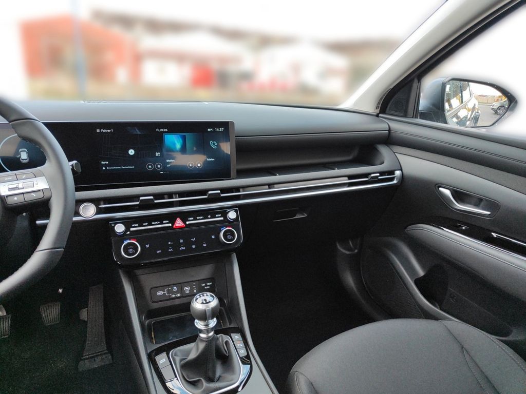 6 Lautsprecher, Airbag Beifahrerseite, Airbag Fahrerseite, Aktives Bremslicht (ESS), Anhänger-Stabilisierungs-Programm (TSA), Audio-Navigationssystem, Audiosystem: Radio RDS, Außenspiegel elektr. anklappbar, Außenspiegel elektr. verstell- und heizbar, beide, Außenspiegel lackiert, Dachreling, Dachspoiler, Digital Cockpit (Instrumentenanzeige Digital), Einschaltautomatik für Fahrlicht / Lichtsensor, Elektron. Stabilitätskontrolle (ESC) mit Bremsassistent, Fahrassistenz-System: aktiver Spurhalteassistent (LKAS, Lane Keep Assist System), Fahrassistenz-System: Aufmerksamkeits-Assistent, Fahrassistenz-System: Ausstiegswarnung, Fahrassistenz-System: Autonome Notbremsfunktion inkl. Frontkollisionswarnung (FCA), Fahrassistenz-System: Berganfahrhilfe, Fahrassistenz-System: Einparkhilfe vorn und hinten, Fahrassistenz-System: Fahrprofilauswahl (Drive Mode), Fahrassistenz-System: Fernlichtassistent, Fahrassistenz-System: Insassenalarm (RSA), Fahrassistenz-System: Multikollisionsbremse (Multi Collision Brake), Fahrassistenz-System: Querverkehrs-Assistent Heck (Cross Traffic), Fahrassistenz-System: Seitenwind-Assistent, Fahrassistenz-System: Sicherheitssystem mit automatischem Notruf (ERA GLONASS / eCall), Fahrassistenz-System: Verkehrszeichenerkennung, erweitert (Geschwindigkeits-Regel-/Begrenzeranlage), Fensterheber elektrisch vorn und hinten, mit Auf-/Ab-Automatik, Freisprecheinrichtung Bluetooth, Gepäck-/Laderaumleuchte LED, Gepäckraumabdeckung / Rollo, Geschwindigkeits-Begrenzeranlage (Speed-Limiter), Gurtstraffer, Heckscheibe heizbar, Induktionsladeschale für Smartphone, Innenspiegel mit Abblendautomatik, Isofix-Aufnahmen für Kindersitz, Karosserie: 5-türig, Klimaautomatik 2-Zonen, Kopf-Airbag-System, Kopfstützen hinten verstellbar, Kühlergrill schwarz (glanzlackiert), Lendenwirbelstütze Sitz vorn links, elektr. verstellbar, Lendenwirbelstütze Sitz vorn rechts, elektr. verstellbar, Leseleuchten vorn und hinten LED, LM-Felgen, Mittelarmlehne hinten, Modellpflege, Motor 1,6 Ltr. - 118 kW T-GDI KAT (1598 ccm), Nebelschlussleuchte, Otto-Partikelfilter (OPF), Parkbremse elektrisch (EPB), Radioempfang digital (DAB+), Radstand 2680 mm, Reifen-Reparaturkit, Reifendruck-Kontrollsystem, Rückfahrkamera, Rücksitzlehne geteilt/klappbar, Rücksitzlehne umklappbar mit Fernentriegelung im Kofferraum, Schadstoffarm nach Abgasnorm Euro 6e, Schalt-/Wählhebelgriff Leder, Scheibenbeschlagerkennung / Regelung, Scheinwerfer Voll-LED, Seitenairbag vorn, Seitenairbag vorn mitte (Central Airbag), Service-System: Online Update OTA (Over The Air), Service-System: Remote Services (Blue Link), Sicherheitsgurte vorn höhenverstellbar, Sitz vorn links höhenverstellbar, Sitz vorn rechts höhenverstellbar, Sitzbezug / Polsterung: Stoff, Sitzheizung vorn, Sonnenblenden mit Spiegel (beleuchtet), Start-Stop-Knopf, Start/Stop-Anlage, Steckdose (12V-Anschluß) im Koffer-/Laderaum, Steckdose (12V-Anschluß) vorn, Touchscreen-Farbdisplay (12,25 Zoll), Türgriffe außen Wagenfarbe, USB-Anschluss (Typ C), USB-Anschluss hinten (Typ C), USB-Anschluss Mittelkonsole, Verglasung Akustikglas, Verglasung getönt, Warnanlage für Sicherheitsgurte, Fahrer-/Beifahrerseite, Wireless SmartLink (Apple CarPlay)