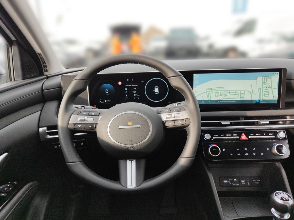 6 Lautsprecher, Airbag Beifahrerseite, Airbag Fahrerseite, Aktives Bremslicht (ESS), Anhänger-Stabilisierungs-Programm (TSA), Audio-Navigationssystem, Audiosystem: Radio RDS, Außenspiegel elektr. anklappbar, Außenspiegel elektr. verstell- und heizbar, beide, Außenspiegel lackiert, Dachreling, Dachspoiler, Digital Cockpit (Instrumentenanzeige Digital), Einschaltautomatik für Fahrlicht / Lichtsensor, Elektron. Stabilitätskontrolle (ESC) mit Bremsassistent, Fahrassistenz-System: aktiver Spurhalteassistent (LKAS, Lane Keep Assist System), Fahrassistenz-System: Aufmerksamkeits-Assistent, Fahrassistenz-System: Ausstiegswarnung, Fahrassistenz-System: Autonome Notbremsfunktion inkl. Frontkollisionswarnung (FCA), Fahrassistenz-System: Berganfahrhilfe, Fahrassistenz-System: Einparkhilfe vorn und hinten, Fahrassistenz-System: Fahrprofilauswahl (Drive Mode), Fahrassistenz-System: Fernlichtassistent, Fahrassistenz-System: Insassenalarm (RSA), Fahrassistenz-System: Multikollisionsbremse (Multi Collision Brake), Fahrassistenz-System: Querverkehrs-Assistent Heck (Cross Traffic), Fahrassistenz-System: Seitenwind-Assistent, Fahrassistenz-System: Sicherheitssystem mit automatischem Notruf (ERA GLONASS / eCall), Fahrassistenz-System: Verkehrszeichenerkennung, erweitert (Geschwindigkeits-Regel-/Begrenzeranlage), Fensterheber elektrisch vorn und hinten, mit Auf-/Ab-Automatik, Freisprecheinrichtung Bluetooth, Gepäck-/Laderaumleuchte LED, Gepäckraumabdeckung / Rollo, Geschwindigkeits-Begrenzeranlage (Speed-Limiter), Gurtstraffer, Heckscheibe heizbar, Induktionsladeschale für Smartphone, Innenspiegel mit Abblendautomatik, Isofix-Aufnahmen für Kindersitz, Karosserie: 5-türig, Klimaautomatik 2-Zonen, Kopf-Airbag-System, Kopfstützen hinten verstellbar, Kühlergrill schwarz (glanzlackiert), Lendenwirbelstütze Sitz vorn links, elektr. verstellbar, Lendenwirbelstütze Sitz vorn rechts, elektr. verstellbar, Leseleuchten vorn und hinten LED, LM-Felgen, Mittelarmlehne hinten, Modellpflege, Motor 1,6 Ltr. - 118 kW T-GDI KAT (1598 ccm), Nebelschlussleuchte, Otto-Partikelfilter (OPF), Parkbremse elektrisch (EPB), Radioempfang digital (DAB+), Radstand 2680 mm, Reifen-Reparaturkit, Reifendruck-Kontrollsystem, Rückfahrkamera, Rücksitzlehne geteilt/klappbar, Rücksitzlehne umklappbar mit Fernentriegelung im Kofferraum, Schadstoffarm nach Abgasnorm Euro 6e, Schalt-/Wählhebelgriff Leder, Scheibenbeschlagerkennung / Regelung, Scheinwerfer Voll-LED, Seitenairbag vorn, Seitenairbag vorn mitte (Central Airbag), Service-System: Online Update OTA (Over The Air), Service-System: Remote Services (Blue Link), Sicherheitsgurte vorn höhenverstellbar, Sitz vorn links höhenverstellbar, Sitz vorn rechts höhenverstellbar, Sitzbezug / Polsterung: Stoff, Sitzheizung vorn, Sonnenblenden mit Spiegel (beleuchtet), Start-Stop-Knopf, Start/Stop-Anlage, Steckdose (12V-Anschluß) im Koffer-/Laderaum, Steckdose (12V-Anschluß) vorn, Touchscreen-Farbdisplay (12,25 Zoll), Türgriffe außen Wagenfarbe, USB-Anschluss (Typ C), USB-Anschluss hinten (Typ C), USB-Anschluss Mittelkonsole, Verglasung Akustikglas, Verglasung getönt, Warnanlage für Sicherheitsgurte, Fahrer-/Beifahrerseite, Wireless SmartLink (Apple CarPlay)