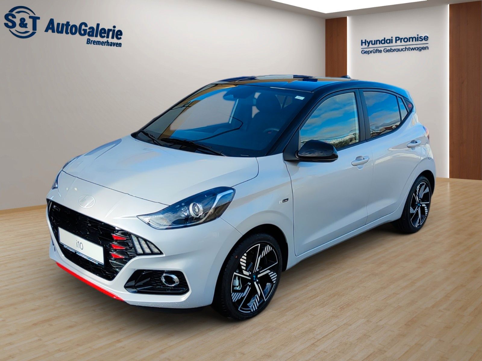 Airbag Beifahrerseite, Airbag Beifahrerseite abschaltbar, Airbag Fahrerseite, Ambiente-Beleuchtung, Audio-Navigationssystem, Audiosystem: Radio RDS, Außenspiegel elektr. anklappbar, Außenspiegel elektr. verstell- und heizbar, beide, Außenspiegel Phantom Black, Blinkleuchte in Außenspiegel integriert, Bordcomputer, Dachspoiler, Dachspoiler Wagenfarbe, Einparkhilfe hinten, Einschaltautomatik für Fahrlicht / Lichtsensor, Elektron. Stabilitätskontrolle (ESC) mit Bremsassistent, Fahrassistenz-System: aktiver Spurhalteassistent (LKAS, Lane Keep Assist System), Fahrassistenz-System: Aufmerksamkeits-Assistent, Fahrassistenz-System: Autonome Notbremsfunktion inkl. Frontkollisionswarnung (FCA), Fahrassistenz-System: Berganfahrhilfe, Fahrassistenz-System: Fahrprofilauswahl (Drive Mode), Fahrassistenz-System: Fernlichtassistent, Fahrassistenz-System: Insassenalarm (Rear Occopant Alert, ROA), Fahrassistenz-System: Multikollisionsbremse (Multi Collision Brake), Fahrassistenz-System: Querverkehrs-Assistent Heck (Cross Traffic), Fahrassistenz-System: Sicherheitssystem mit automatischem Notruf (ERA GLONASS / eCall), Fahrassistenz-System: Totwinkel-Assistent, Fahrassistenz-System: Verkehrszeichenerkennung, erweitert (Geschwindigkeits-Regel-/Begrenzeranlage), Fensterheber elektrisch hinten, Freisprecheinrichtung Bluetooth, Funktions-Paket, Gepäck-/Laderaumleuchte, Gepäckraumabdeckung / Rollo, Getriebe 7-Gang – Doppelkupplungsgetriebe DCT, Gurtstraffer, Heckscheibe heizbar, Induktionsladeschale für Smartphone, Innenspiegel mit Abblendautomatik, Karosserie: 5-türig, Klimaautomatik, Kopf-Airbag-System, Kopfstützen hinten verstellbar, Kühlergrill schwarz (mattlackiert), Lenkrad heizbar, Lenksäule (Lenkrad) höhenverstellbar, Lenksäule (Lenkrad) längsverstellbar, Licht-Paket, LM-Felgen, Modellpflege, Motor 1,0 Ltr. – 74 kW TGDI KAT, Otto-Partikelfilter (OPF), Pedale Aluminium, Radioempfang digital (DAB+), Reifen-Reparaturkit, Reifendruck-Kontrollsystem, Rückfahrkamera, Rücksitzlehne geteilt/klappbar, Schadstoffarm nach Abgasnorm Euro 6e, Scheibenbeschlagerkennung / Regelung, Seitenairbag vorn, Service-System: Remote Services (Blue Link), Sicherheitsgurte vorn höhenverstellbar, Sitz vorn links höhenverstellbar, Sitzbezug / Polsterung: Stoff, Sitzheizung vorn, Sonnenblenden mit Spiegel (beleuchtet), Sound-System BOSE, Start/Stop-Anlage, Steckdose (12V-Anschluß) vorn, Türgriffe außen Wagenfarbe, USB-Anschluss (Typ C), USB-Anschluss hinten, USB-Anschluss hinten (Typ C), USB-Anschluss Mittelkonsole, Verglasung getönt, Verglasung hinten abgedunkelt (Privacy Glass), Warnanlage für Sicherheitsgurte, Fahrer-/Beifahrerseite, Wireless SmartLink (Apple CarPlay)